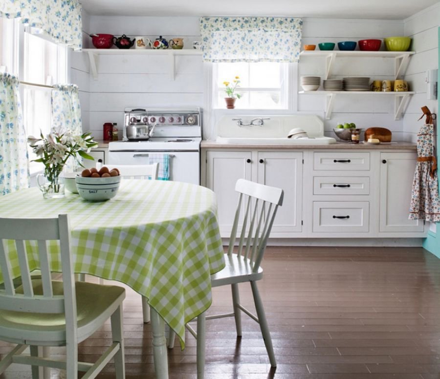 Langsir di dapur dalam gaya Provence (pemilihan gambar)