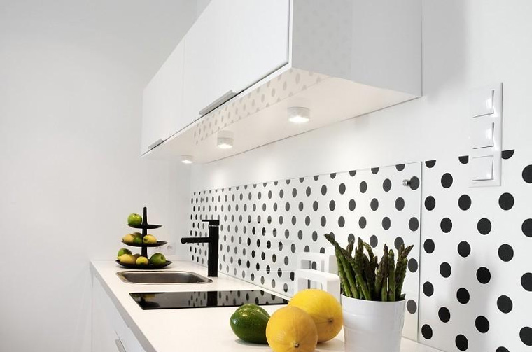 Lampu dan lekapan yang digunakan dalam penampilan dan skema warna mereka sebaiknya digabungkan dengan gaya asas dan reka bentuk dapur, sambil menyediakan lampu maksimum.