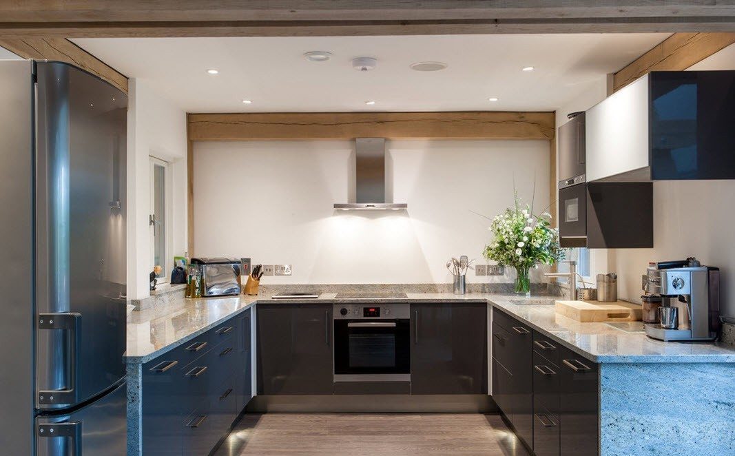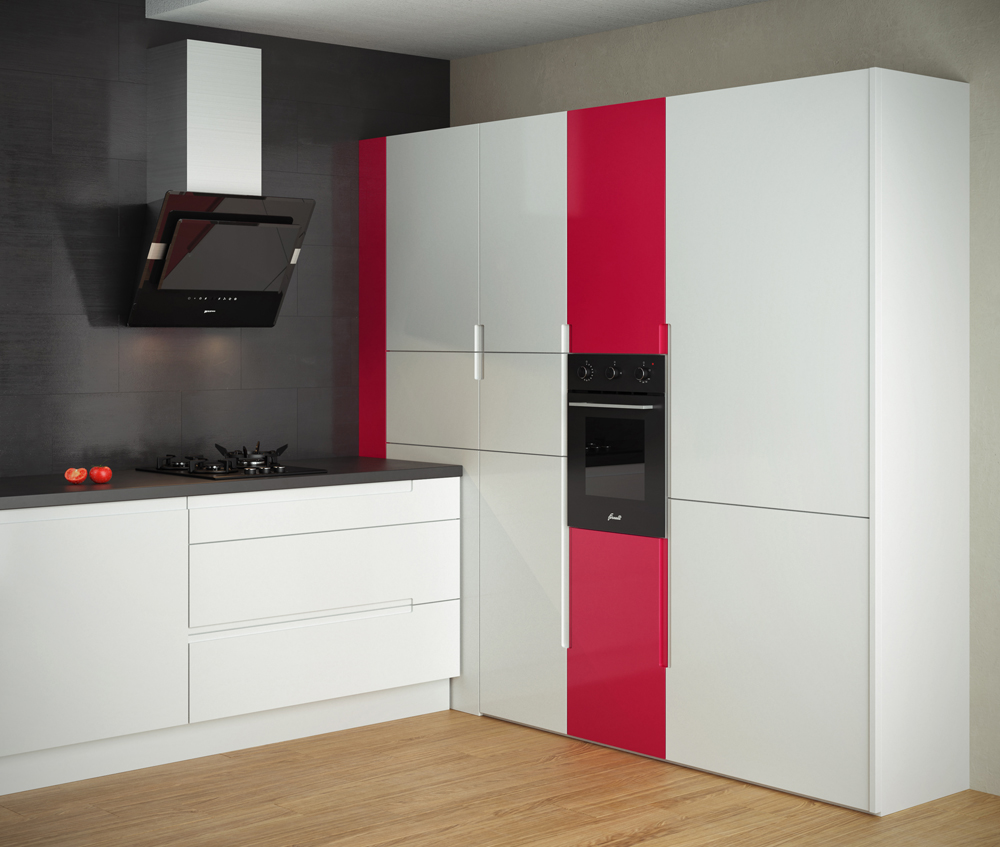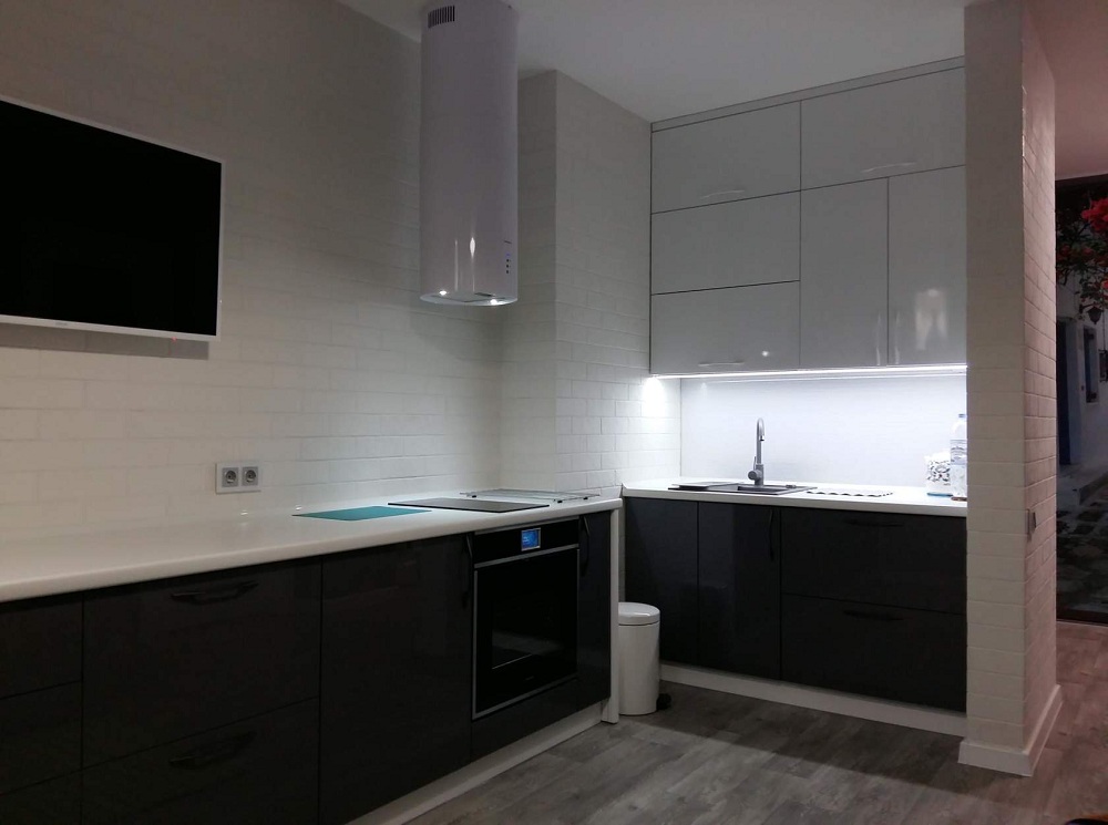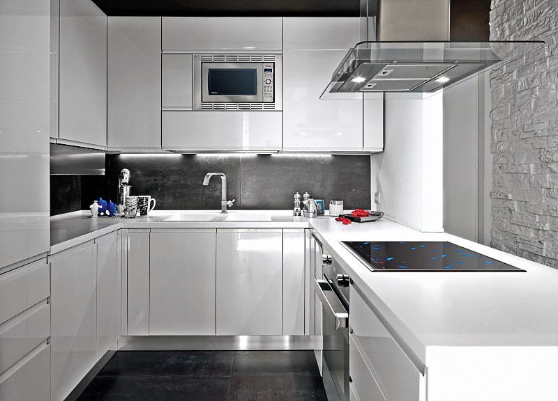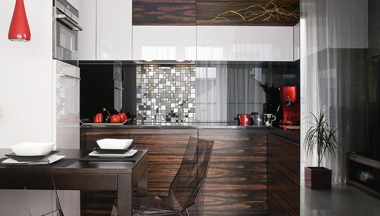 - Gloss - terutama jika ini adalah fasad modul dapur baru. Walaupun hakikat ini kelihatannya tidak selesa untuk tuan rumah, kaedah seperti ini dapat meredakan perasaan pengasingan;