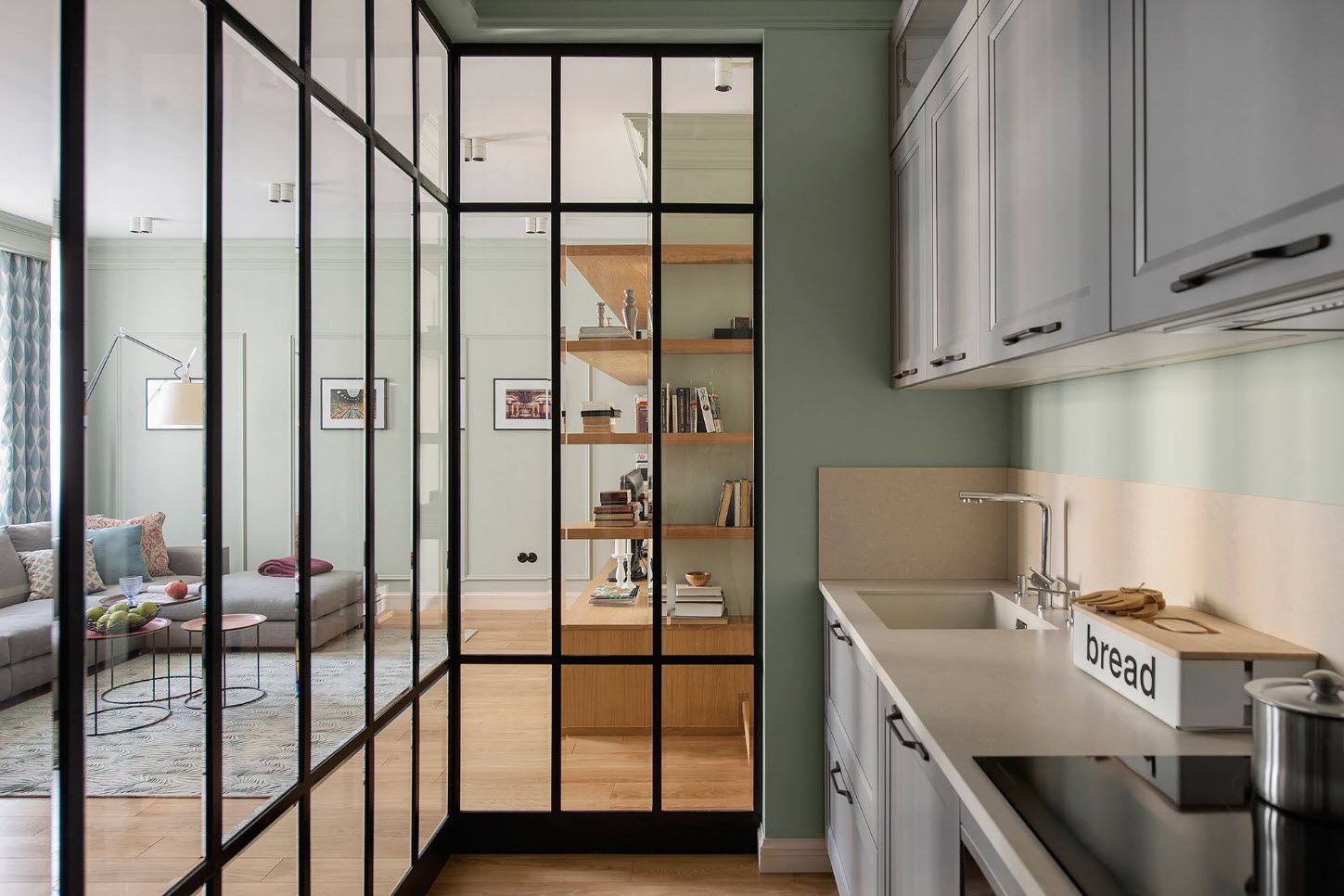 Cermin mencerminkan cahaya, dapur akan kelihatan semula jadi.