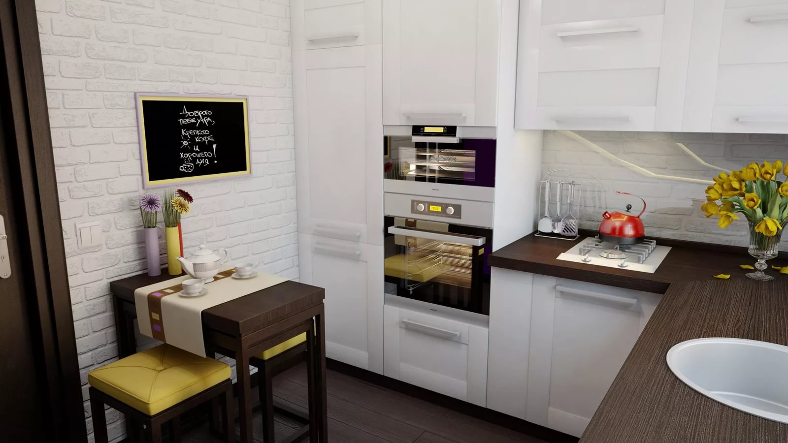 Untuk mewujudkan kesenangan dan keselesaan di dapur dengan tingkap yang hilang, anda perlu memberi nilai yang sangat penting untuk mereka bentuk.