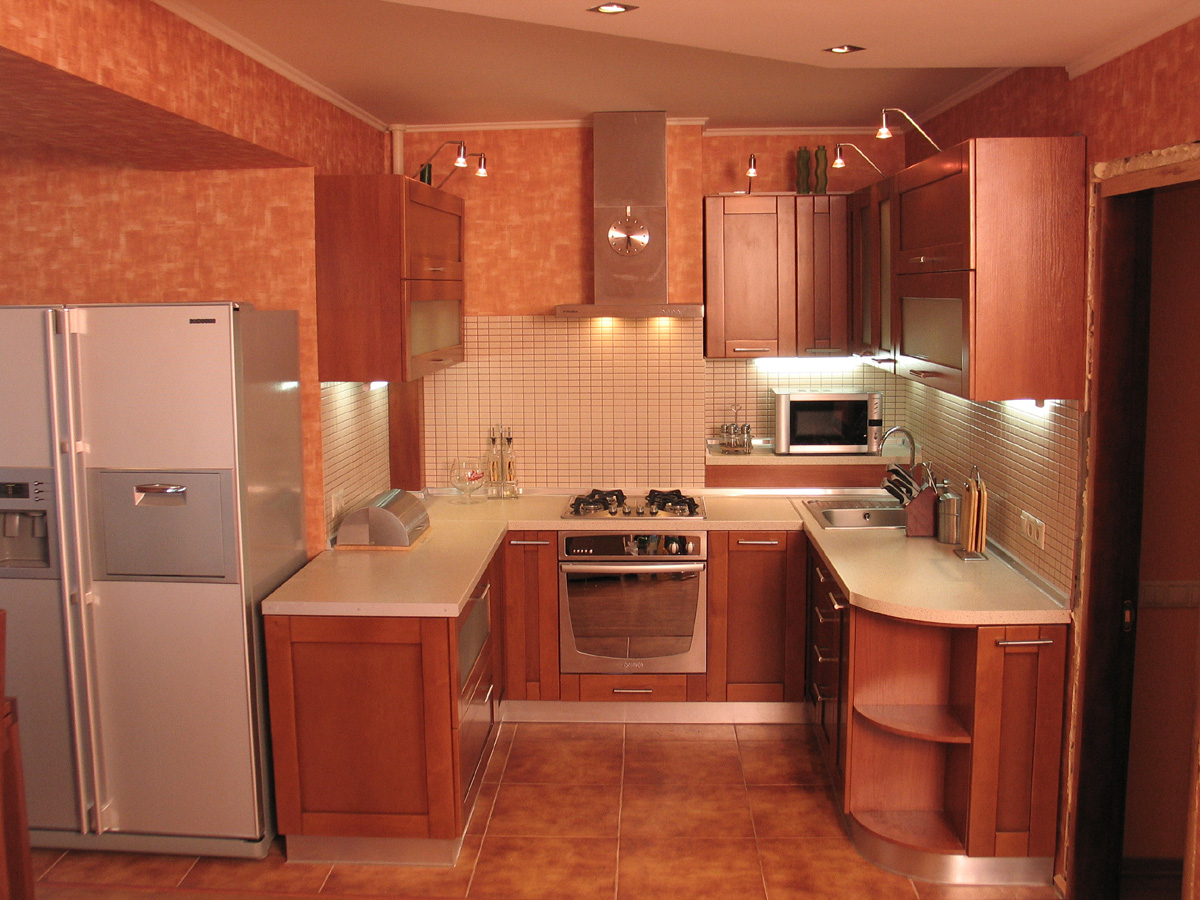 - Dapur dengan huruf P - membolehkan anda membiarkan sumber cahaya dari beberapa sudut sekaligus. Ia boleh menjadi dapur di niche itu sendiri tanpa tingkap.