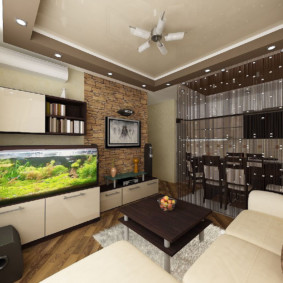 - Kelebihan dan keburukan ruang tamu dapur 15 sq. m