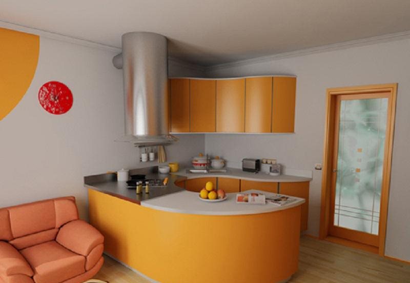 Pengaturan sudut perabot di zon memasak memastikan pematuhan sempurna dari "segitiga kerja" aturan