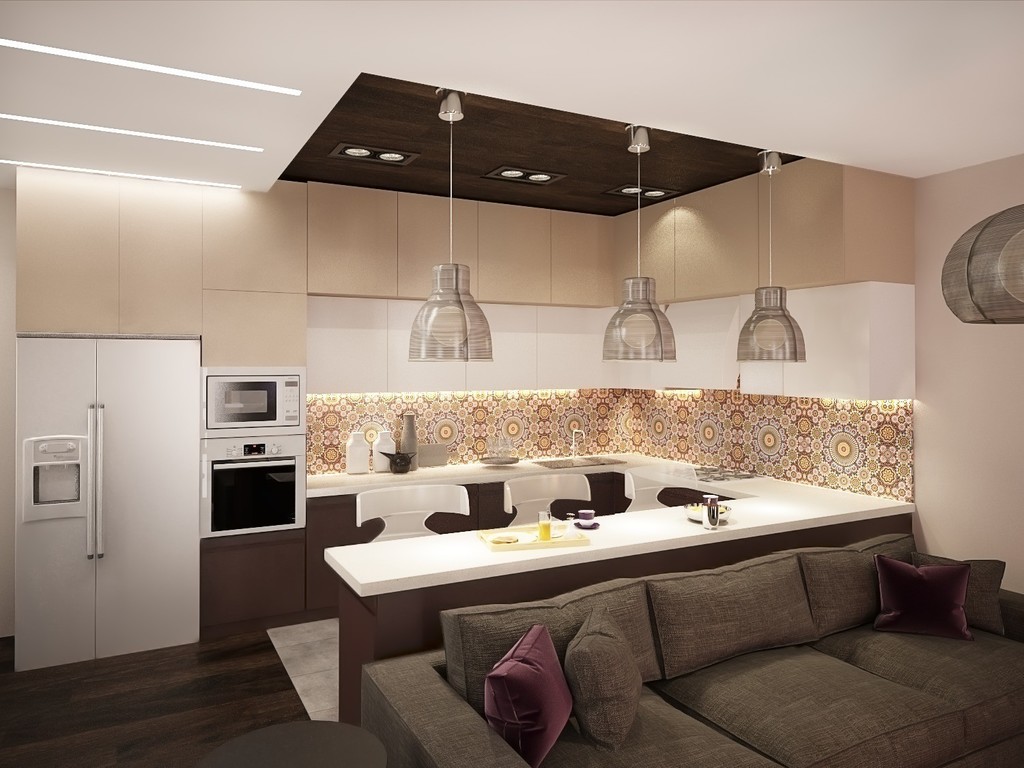 Di pangsapuri moden, walaupun kawasan mereka telah meningkat dengan ketara berbanding Khrushchev, seringkali tidak ada ruang kosong untuk ruang tamu atau ruang makan yang lengkap. Oleh sebab itu, ramai orang mempunyai idea menggabungkan dapur dengan ruang untuk menerima tetamu. Jika dapur adalah 15 meter persegi. m, ia telah membolehkan anda untuk memperkenalkan beberapa idea reka bentuk, melaksanakan zoning bilik.