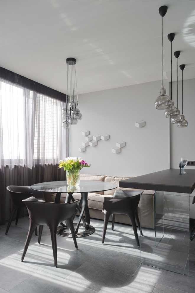 - Menyoroti zon individu dengan bantuan alat pencahayaan juga akan membantu secara visual membahagi ruang dan mewujudkan suasana yang selesa.