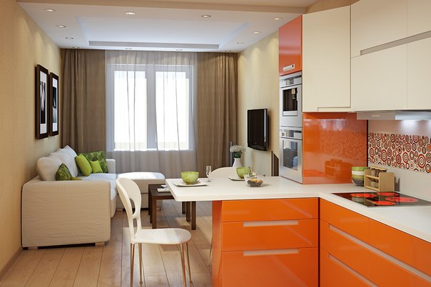 Kelebihan dan keburukan ruang tamu dapur 15 sq. m