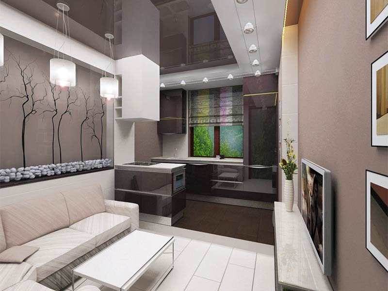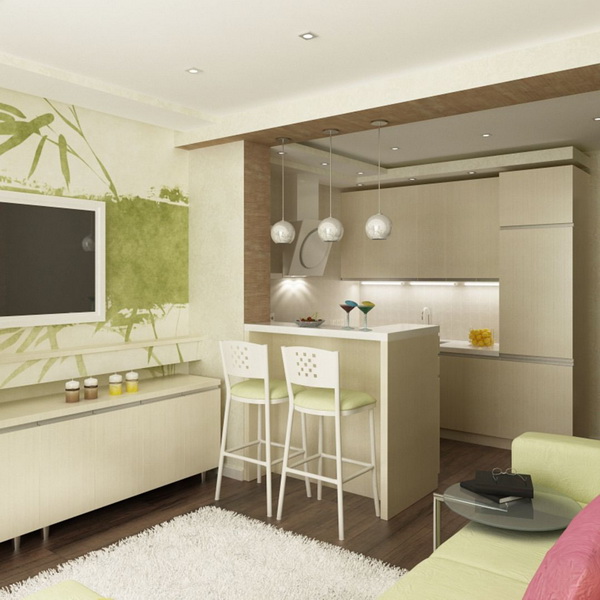 - Kelebihan dan keburukan ruang tamu dapur 15 sq. m