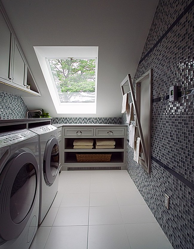 Sekiranya tidak mustahil untuk memasang sistem lipat, apabila kawasan itu diduduki oleh mesin basuh, tenggelam, pengering asal untuk mandi akan menjadi keselamatan.