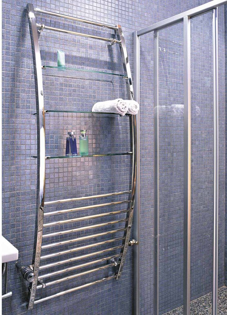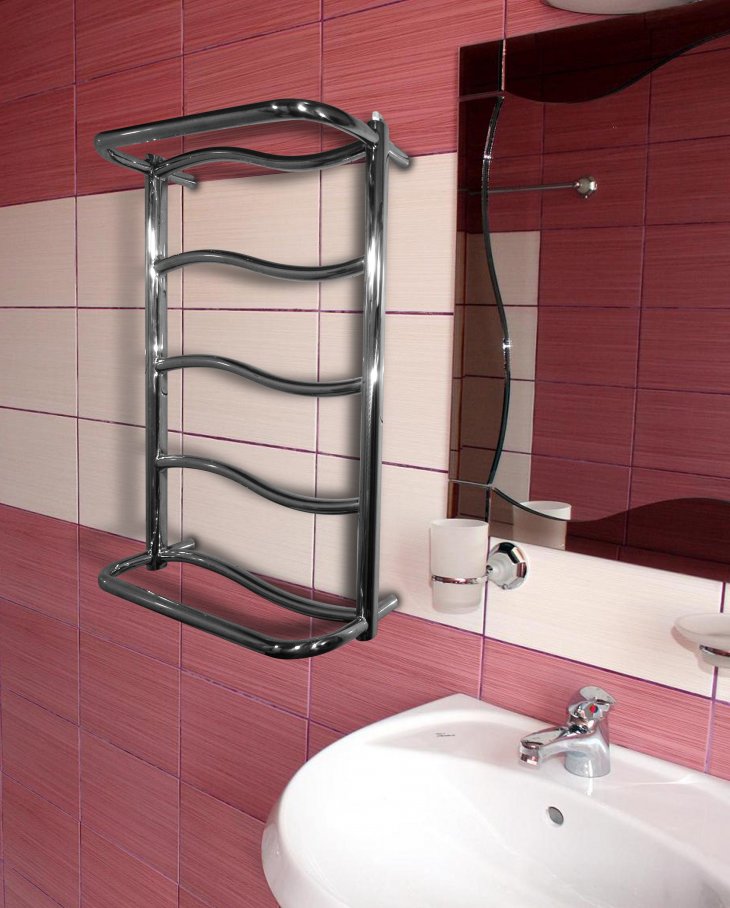 Ia kelihatan seperti enam risers, yang disambungkan oleh elemen logam tahan haus. Dalam proses menggantung batang dikawal ke arah diri mereka, kembali ke ketinggian yang dikehendaki. Ia tidak bengkok di bawah berat sehingga dua puluh kg. Fungsi pengering mandi yang dipasang di dinding adalah sama dengan pengering elektrik. Konfigurasi dibuat dalam bentuk tangga, direka untuk serentak menggantung sebilangan kecil perkara.