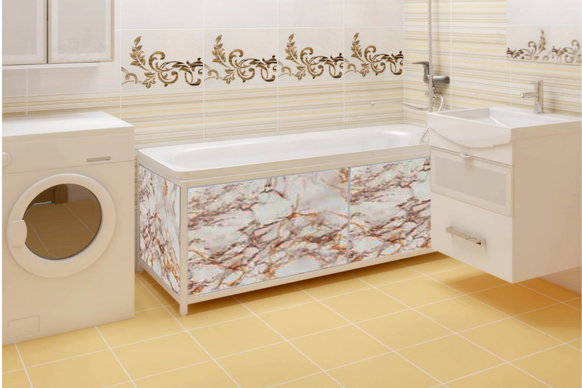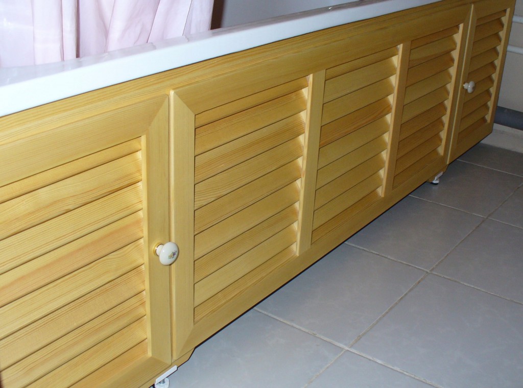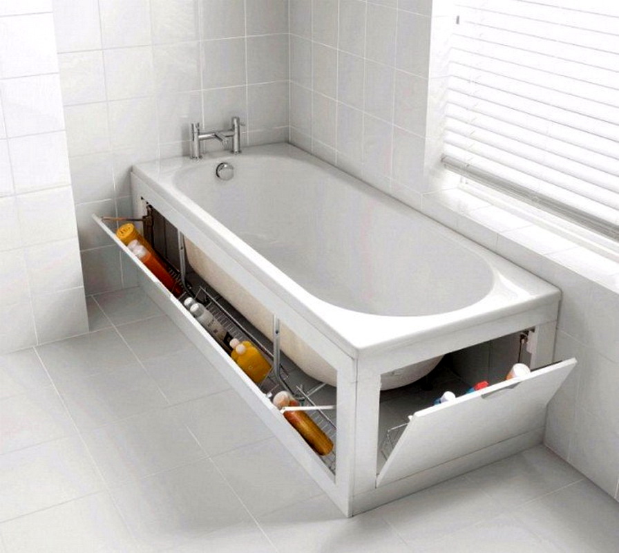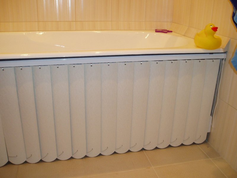 Oleh itu, skrin di bawah / untuk bilik mandi adalah struktur, yang paling kerap diperbuat daripada bahan plastik, yang mana, membentuk sejenis kotak di sekeliling tab mandi, dengan itu menyembunyikan kedua-dua tab mandi itu sendiri dan saluran komunikasi paip. Terdapat banyak reka bentuk kotak sedemikian, serta bahan-bahan dari mana ia dibuat. Fakta ini membuat skrin menjadi popular, kerana setiap orang boleh memilih pilihan yang paling sesuai dengannya.