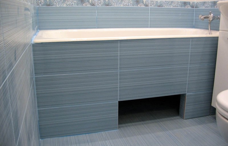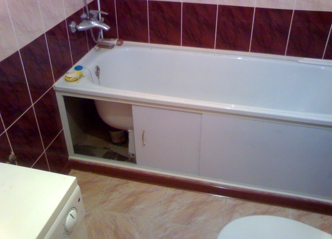 Untuk mengakses komunikasi, yang terletak di bawah mangkuk mandi, adalah perlu untuk melengkapkan pintu gelangsar atau swing.