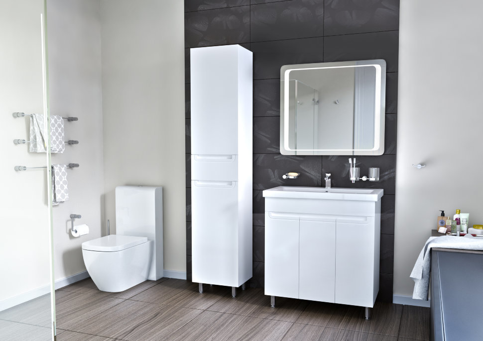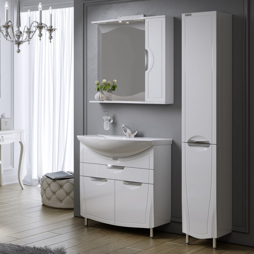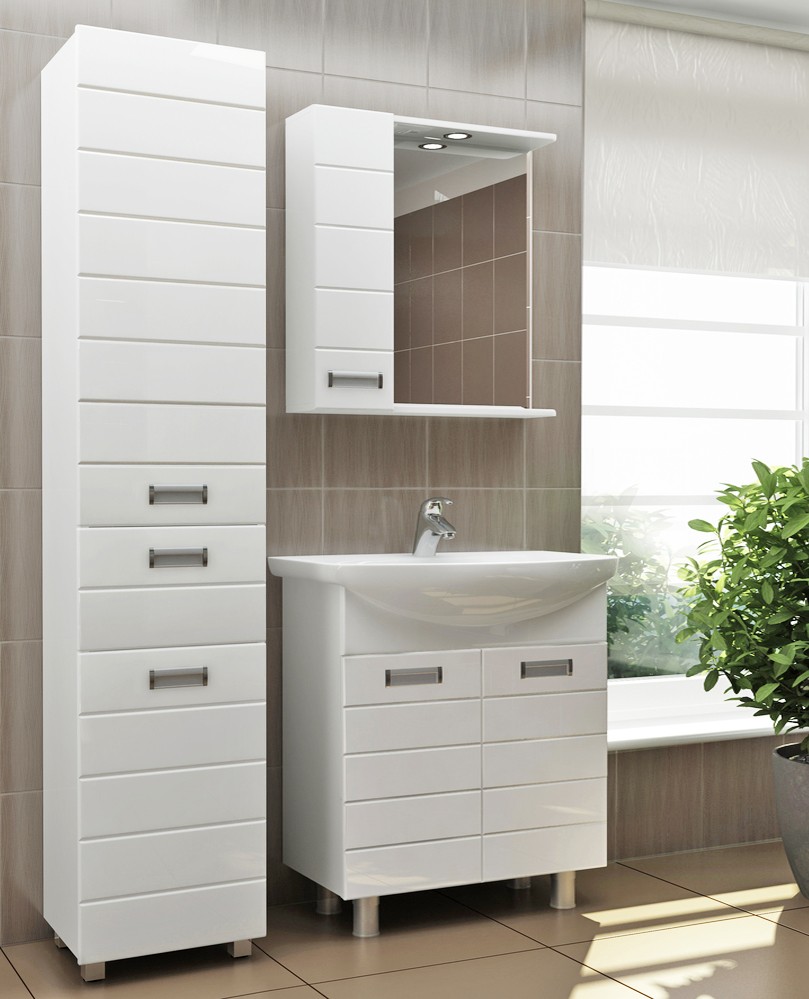 Tetapi pertama tentang yang menyenangkan. Jadi apakah kelebihan perabot cermin? Pertama sekali, ia adalah pelbagai fungsi. Dalam keadilan, perlu diingat bahawa hari ini angka ini dalam fesyen. Kabinet boleh menampung banyak barangan kebersihan dan tekstil bilik mandi. Di samping itu, kebanyakan model dilengkapi dengan dulang dan kotak, di mana perkara kecil yang penting disimpan dengan selamat.