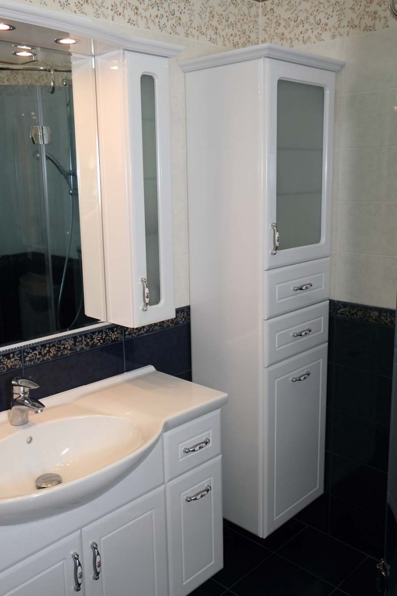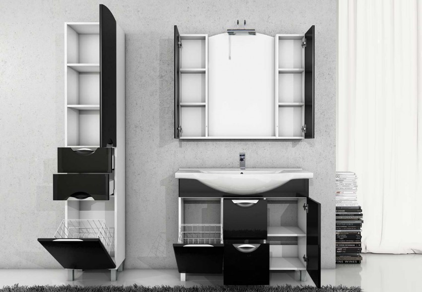 Sebagai peraturan, tidak ada alat supernatural untuk menyimpan "mandian" yang diperlukan. Pengisian kabinet dibuat sangat mudah.