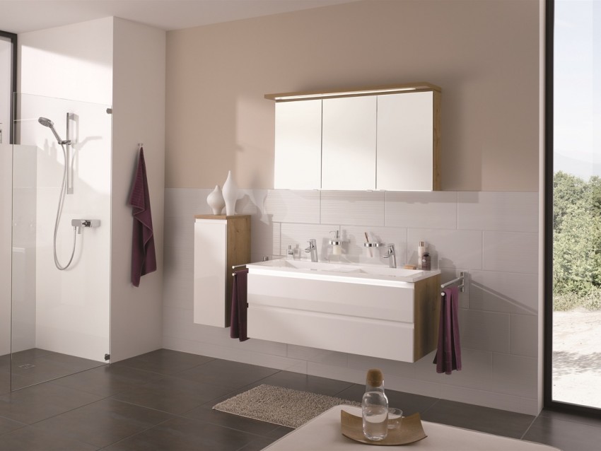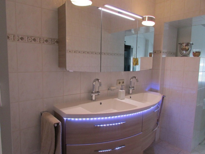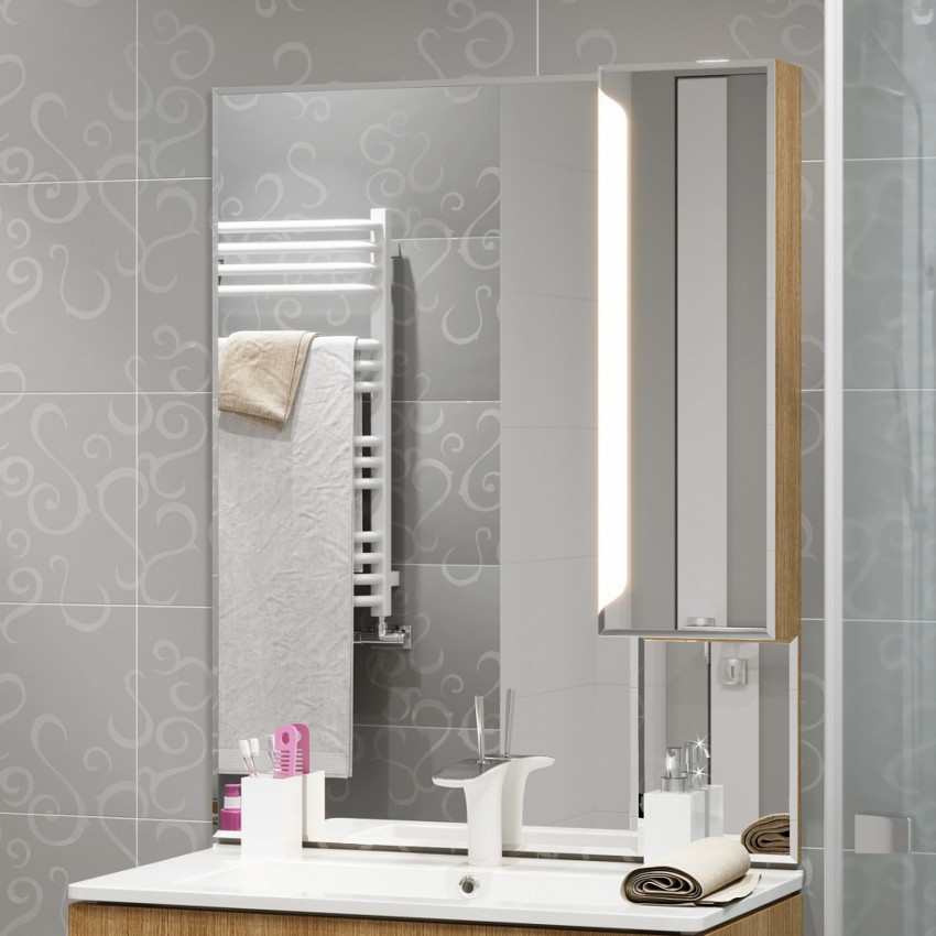 Walaupun terdapat banyak cahaya di bilik mandi, maka kabinet cermin masih lebih baik untuk memilih dengan pencahayaan dalaman tambahan.