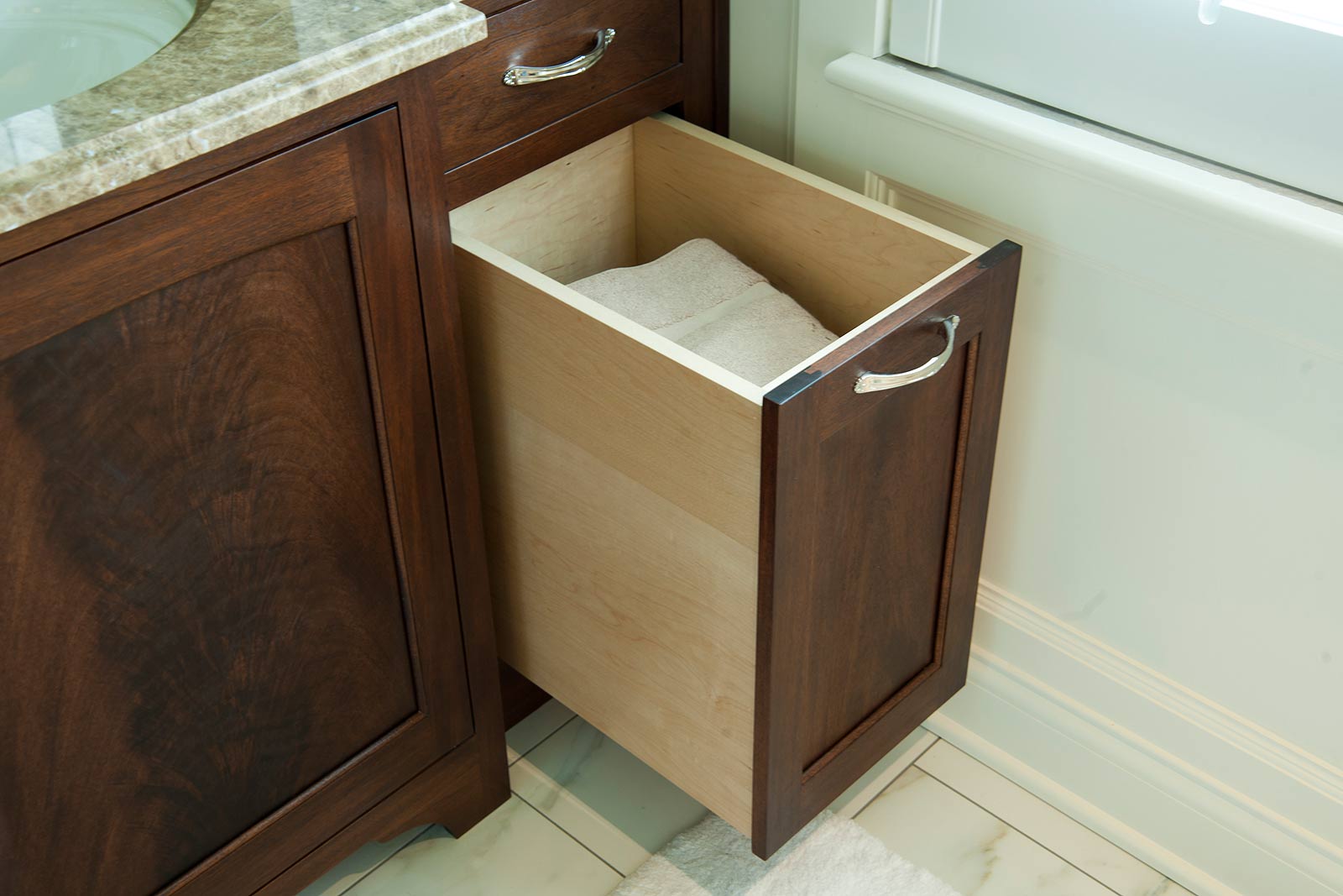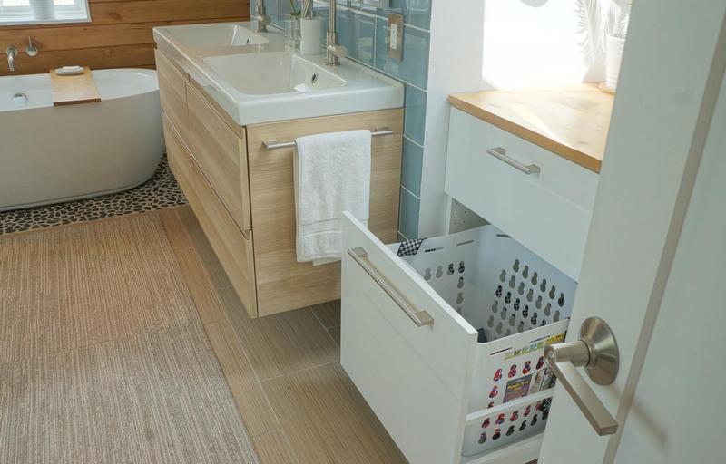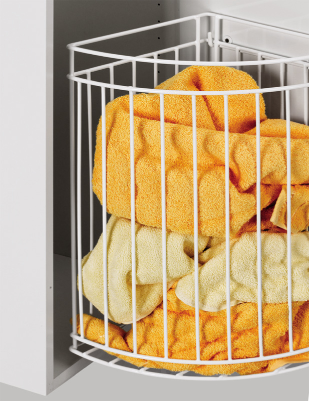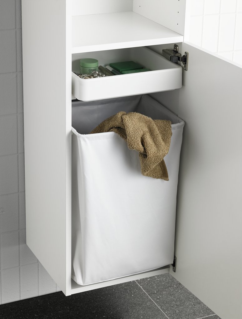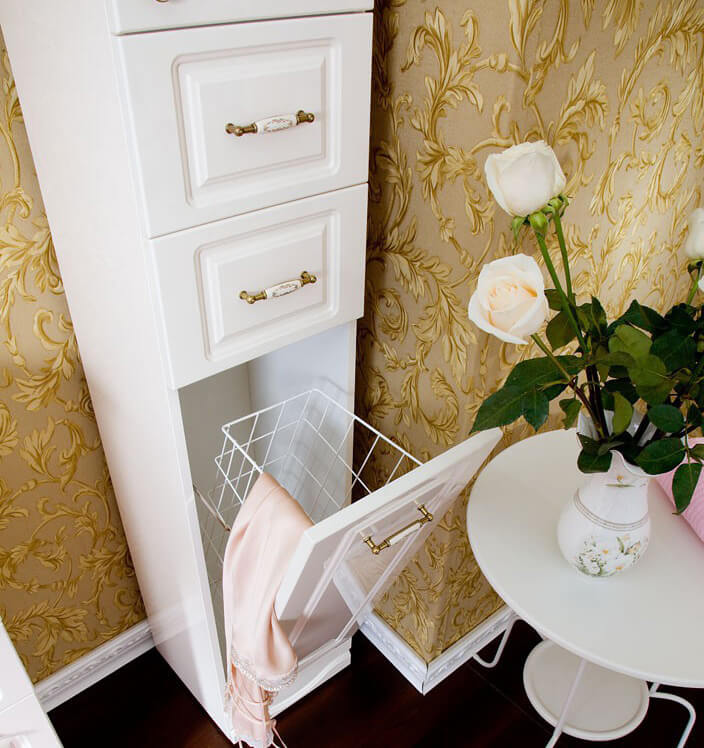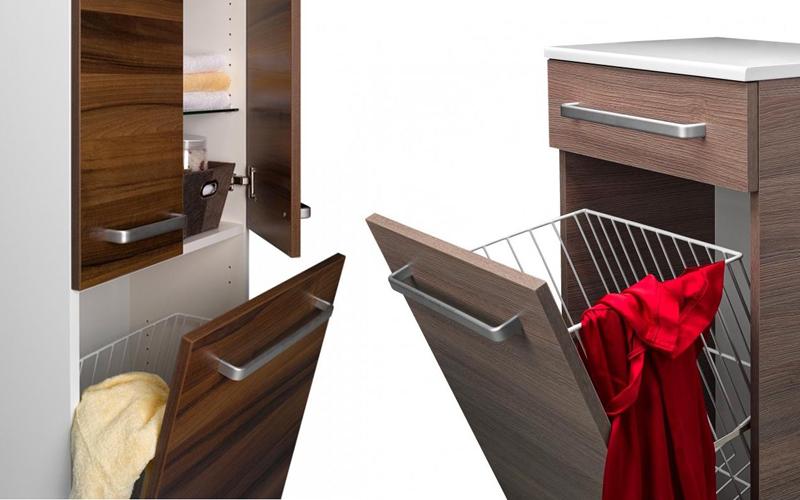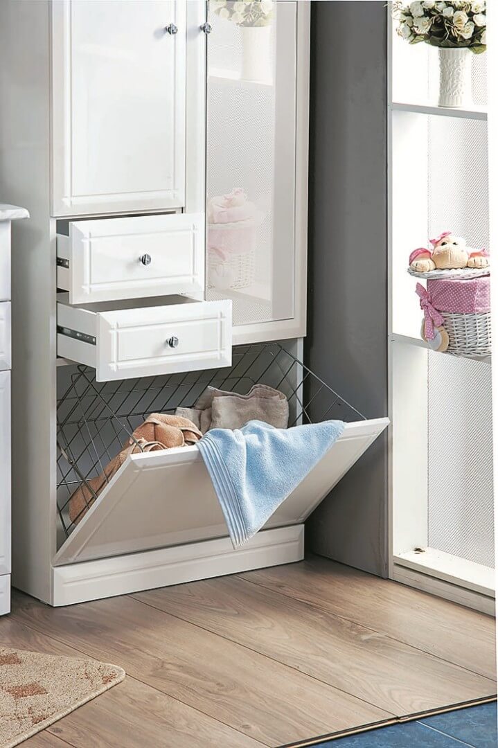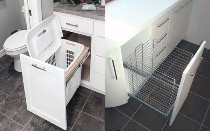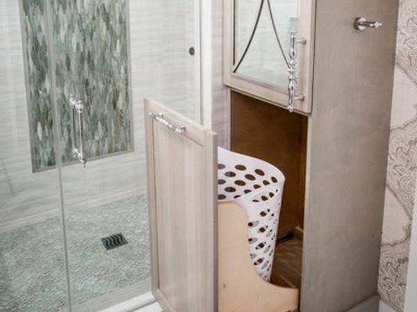- Bakul dobi terbina dalam akan membantu mengekalkan susunan di bilik mandi tanpa meninggalkan perkara yang kotor.