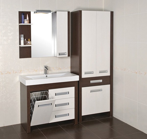 Penyelesaian terbaik akan menjadi kabinet di dalam bilik mandi dengan bakul dobi.