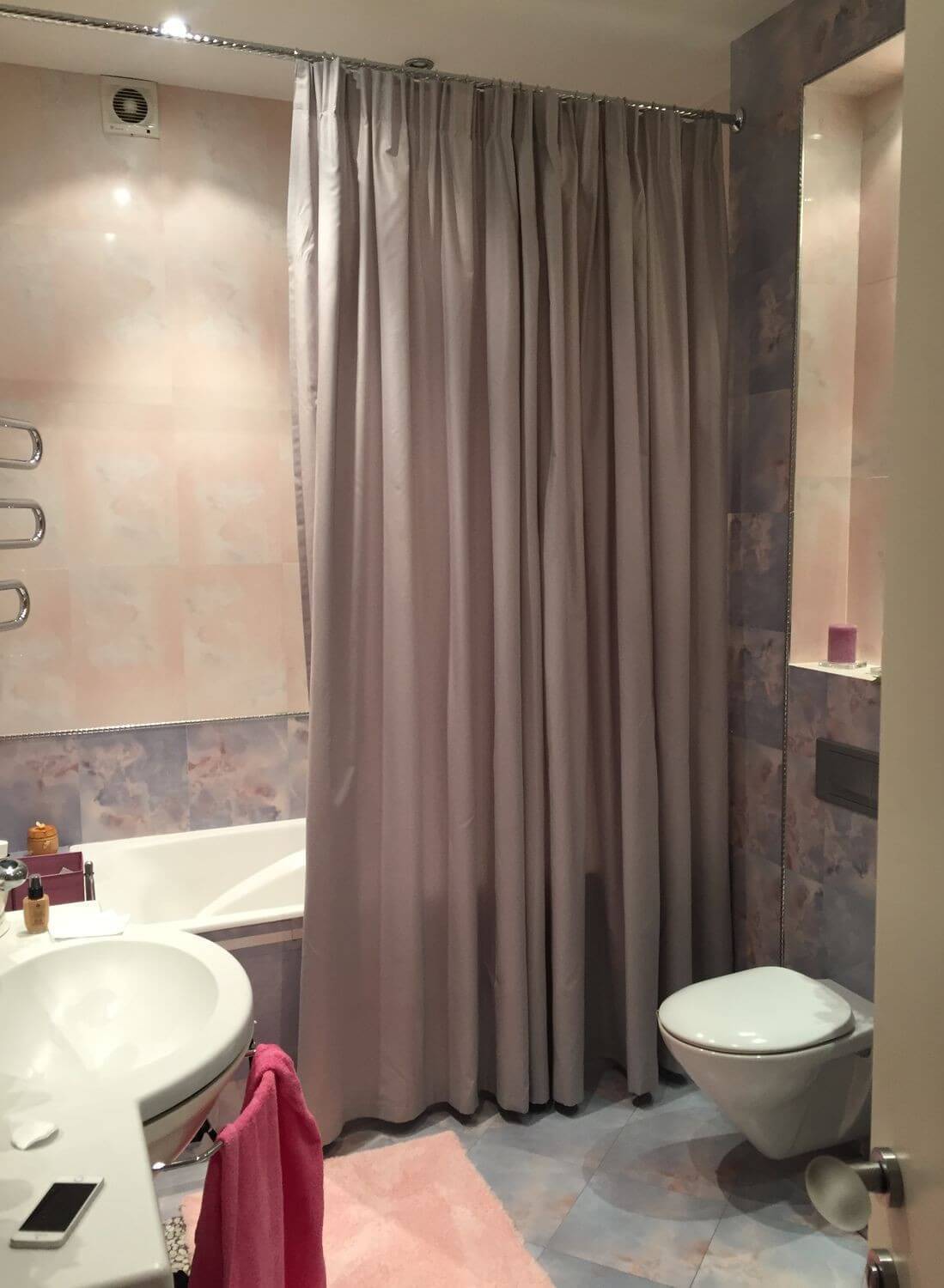 Semua jenis langsir yang diperbuat daripada bahan lembut mempunyai mekanisme pemasangan serupa. Mereka dipasang pada bar yang dipasang di atas tab mandi. Bar boleh sama ada keluli atau plastik. Juga, bar boleh bersudut, jika susun atur bilik mandi anda memerlukannya. Pilihan kedua adalah lebih biasa, kerana kosnya kurang, kurang berat, dan lebih mudah dipasang tanpa bantuan.