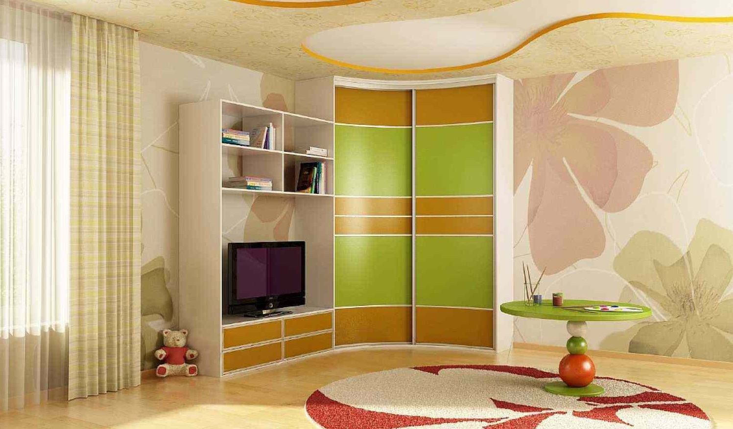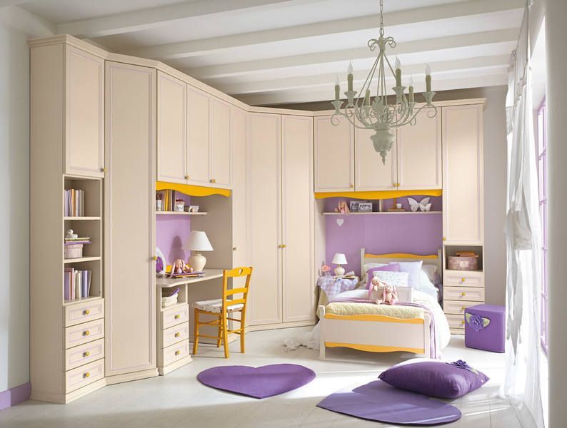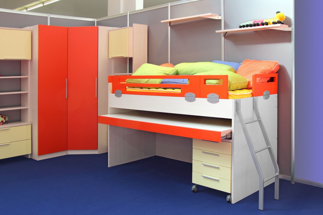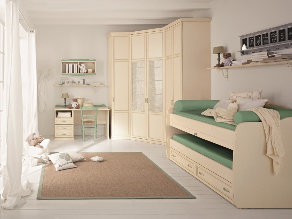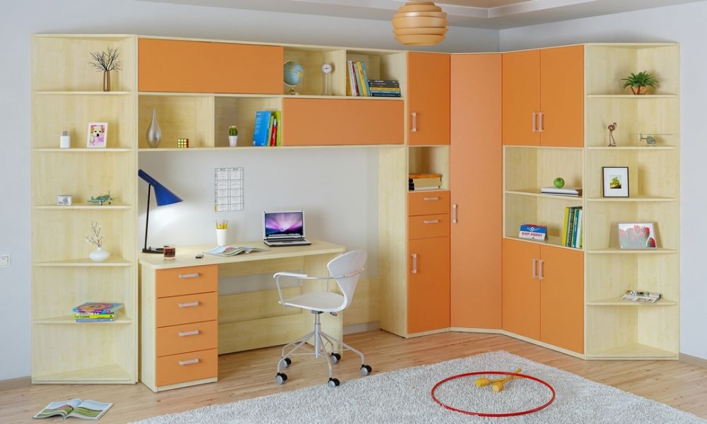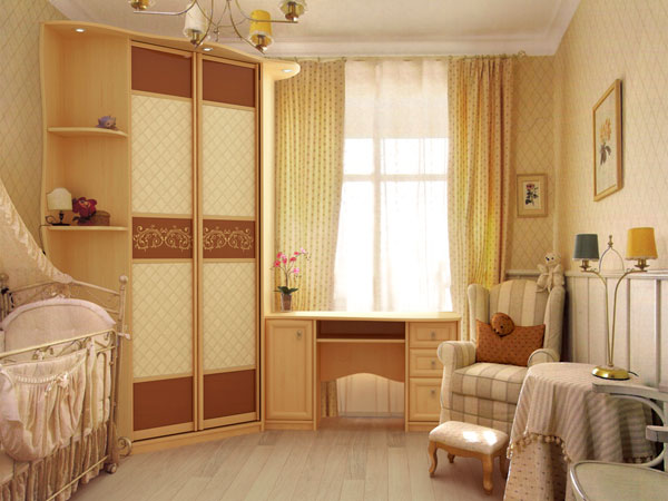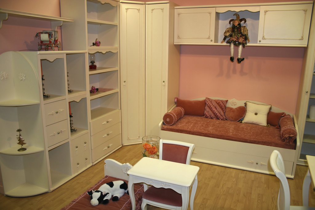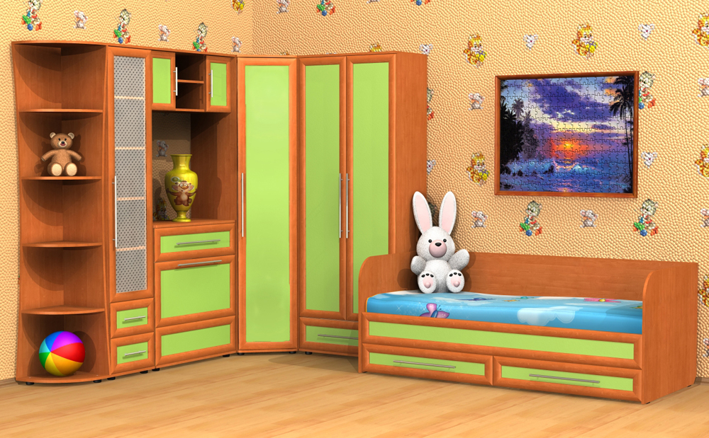 Heel vaak worden hoekkasten gebruikt bij het ontwerpen van de ruimte van kinderkamers.