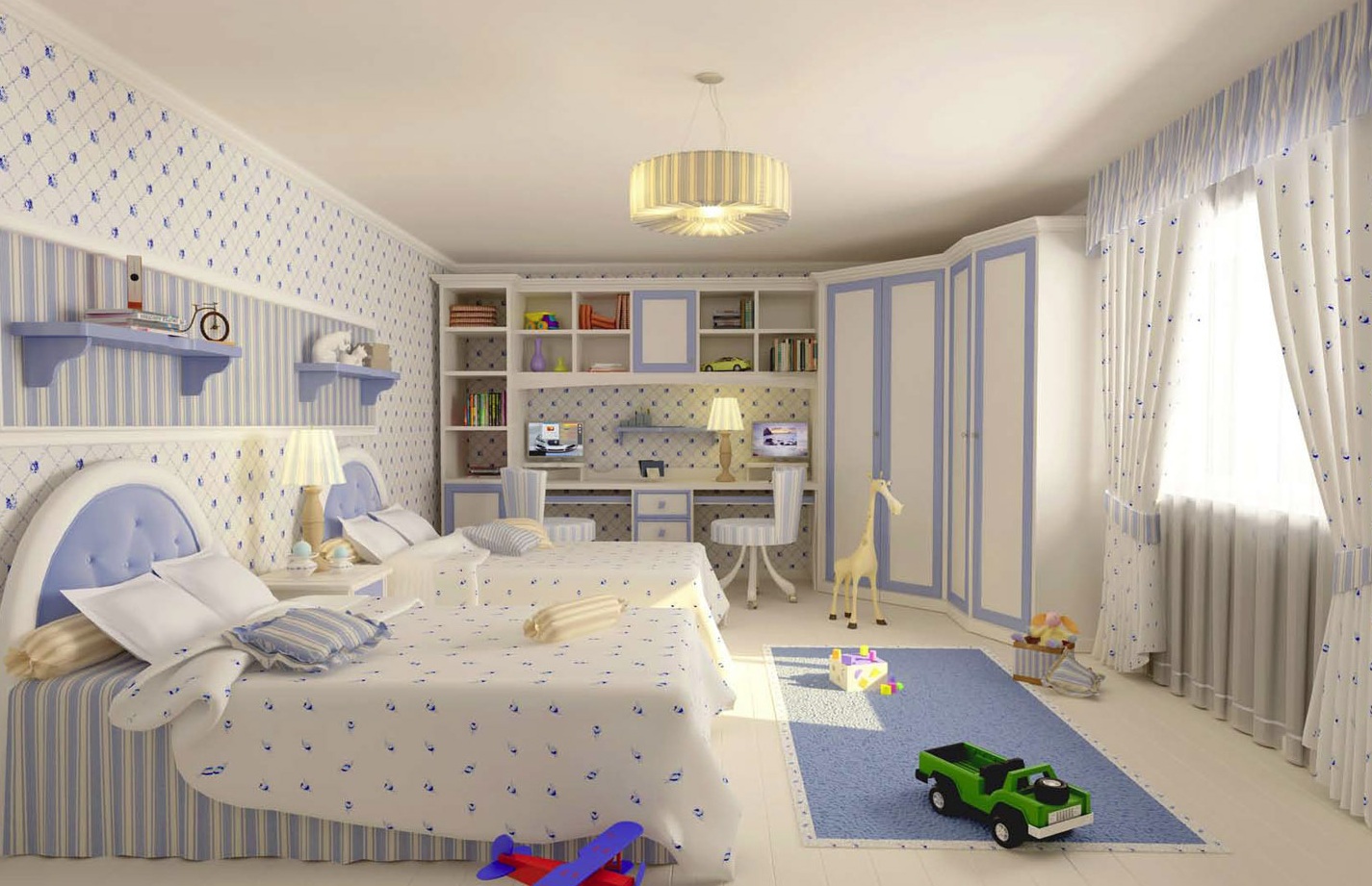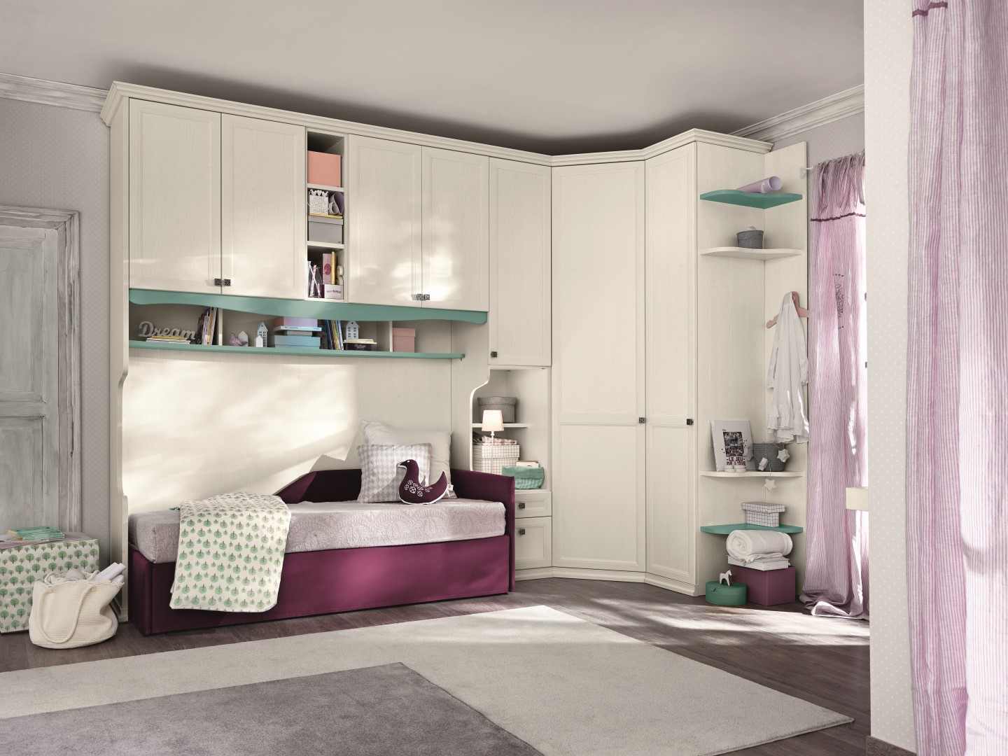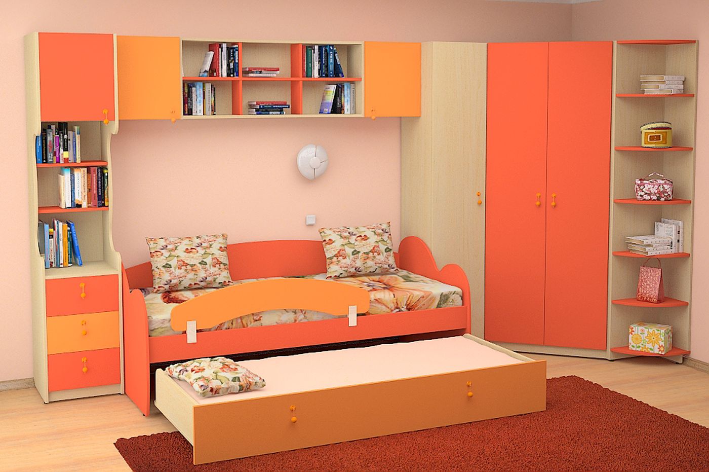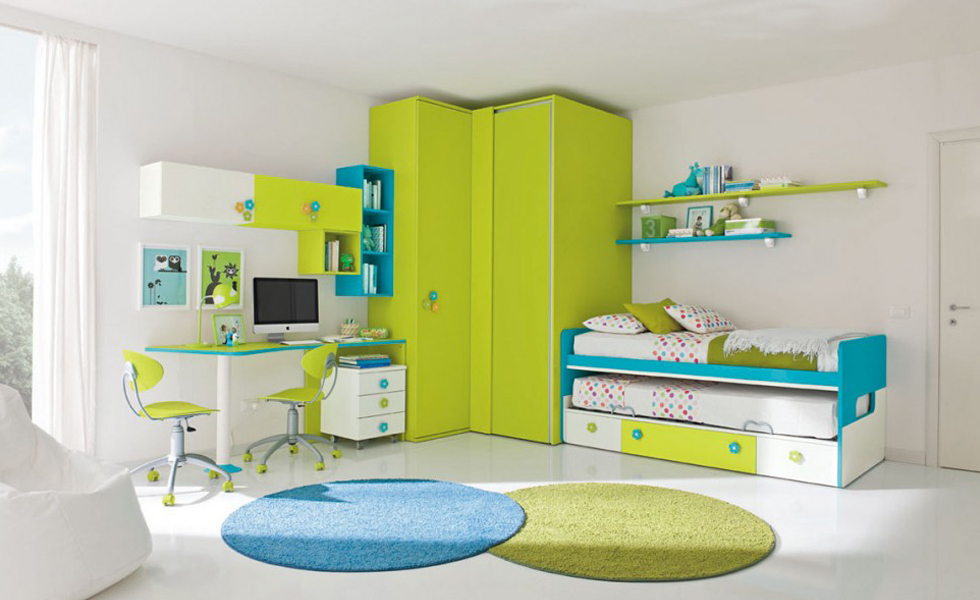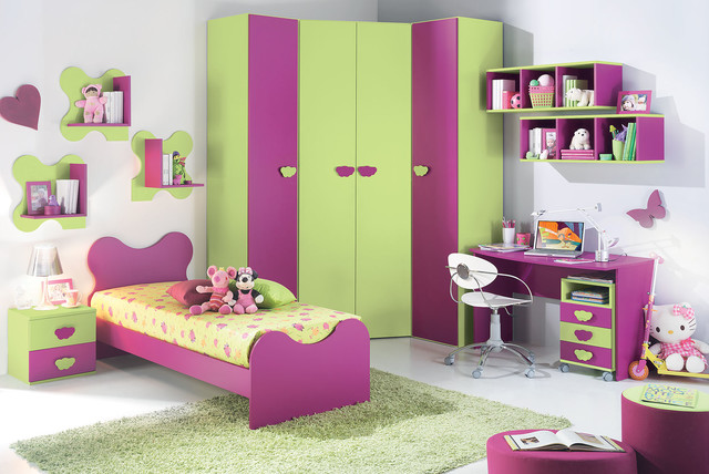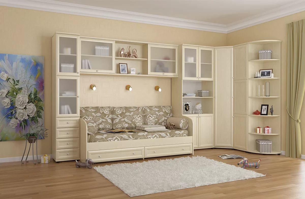 Heel vaak worden hoekkasten gebruikt bij het ontwerpen van de ruimte van kinderkamers.