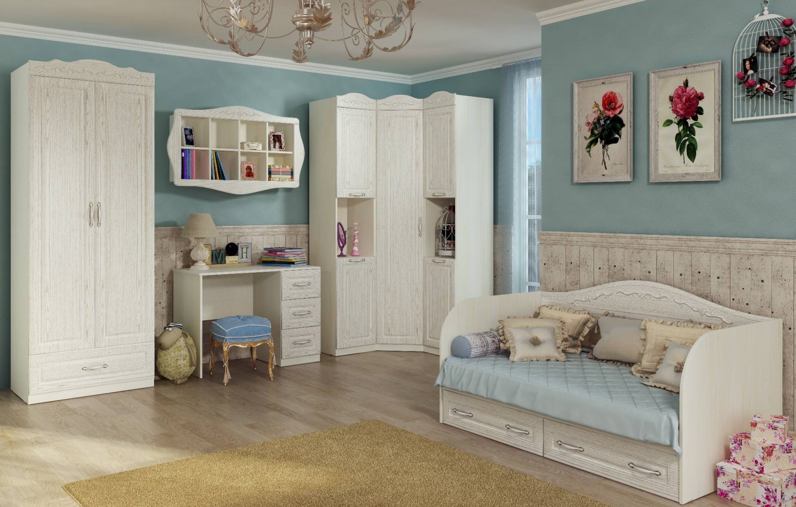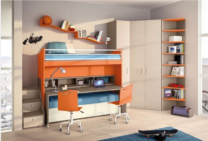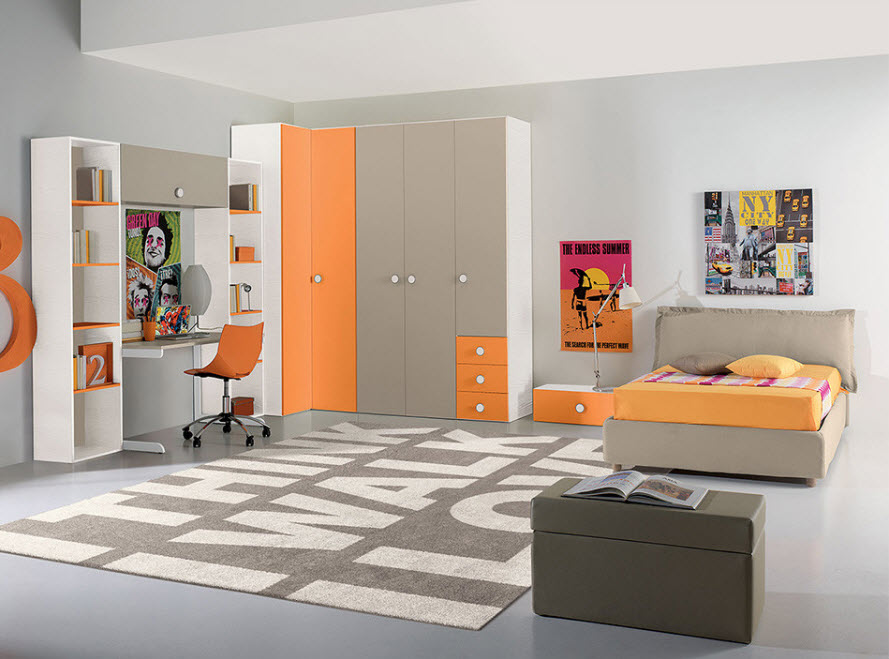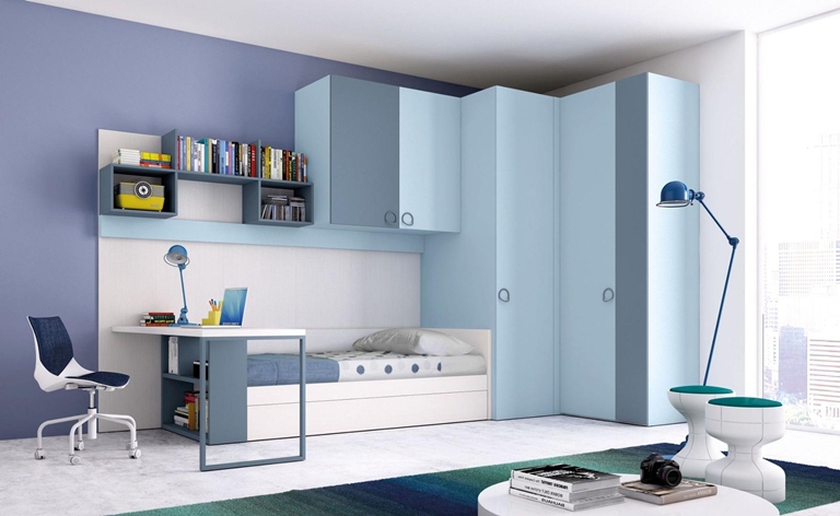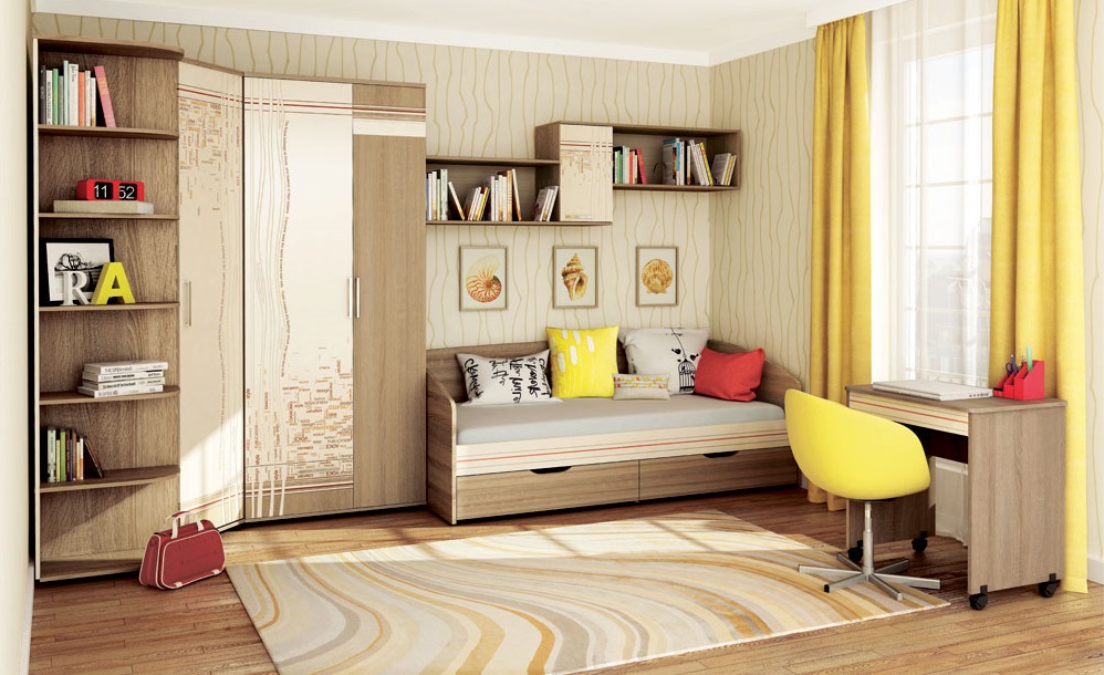 Als het kind een tiener is, is het in dit geval beter om zich te concentreren op ruimtelijkheid, de aanwezigheid van multifunctionele compartimenten, enz. Het kleurenschema van hoekkasten in de kinderkamer is afhankelijk van de vloer.
