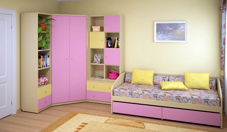Een hoekkast voor kinderen kiezen, afhankelijk van het geslacht van het kind