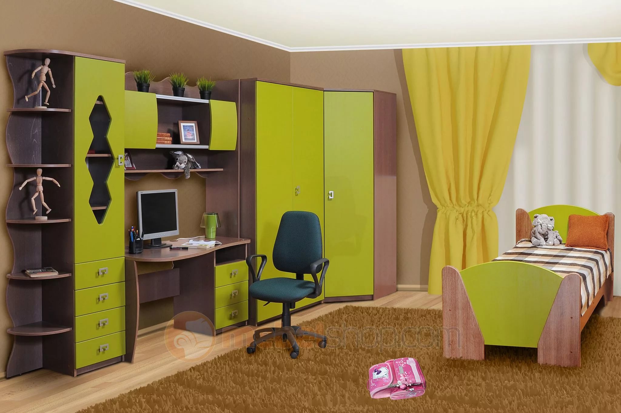 Met de hoekkast, in de hoek van de kamer, kunt u de ruimte van de kamer voor het kind uiterst effectief organiseren.
