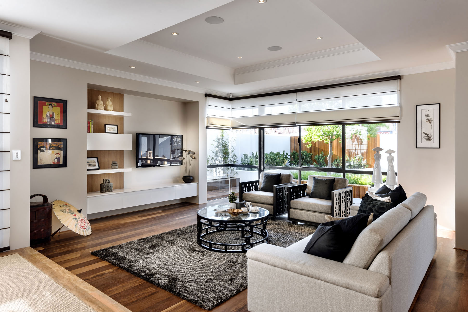 Moderne woonkamers proberen licht en luchtig te maken, maar comfort blijft de grootste zorg.