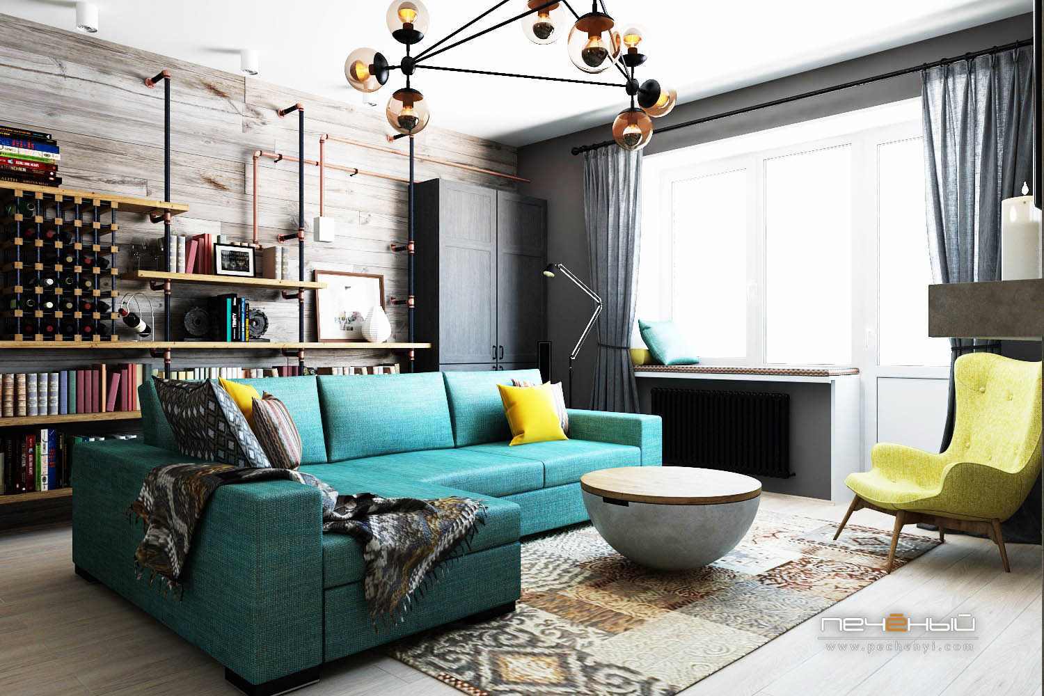 Voor het originele modieuze interieur van de woonkamer is elke ervaring van creatieve expressie geschikt.
