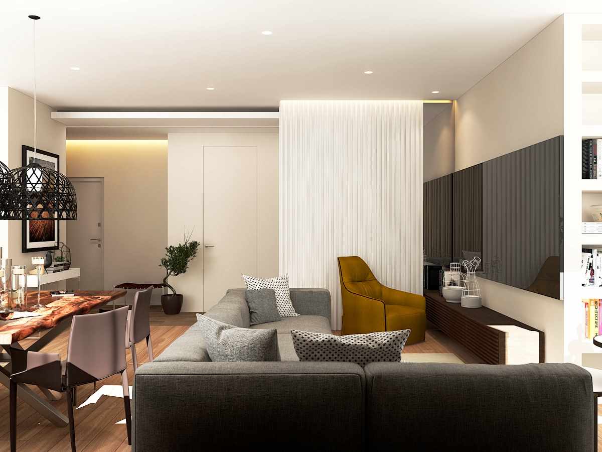 Het moderne ontwerp van de woonkamer moet mooi en functioneel zijn.