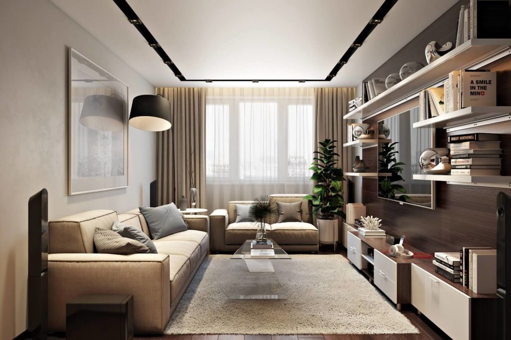 Moderne ontwerpers kunnen de woonkamer gezellig, harmonieus en tegelijkertijd functioneel maken.