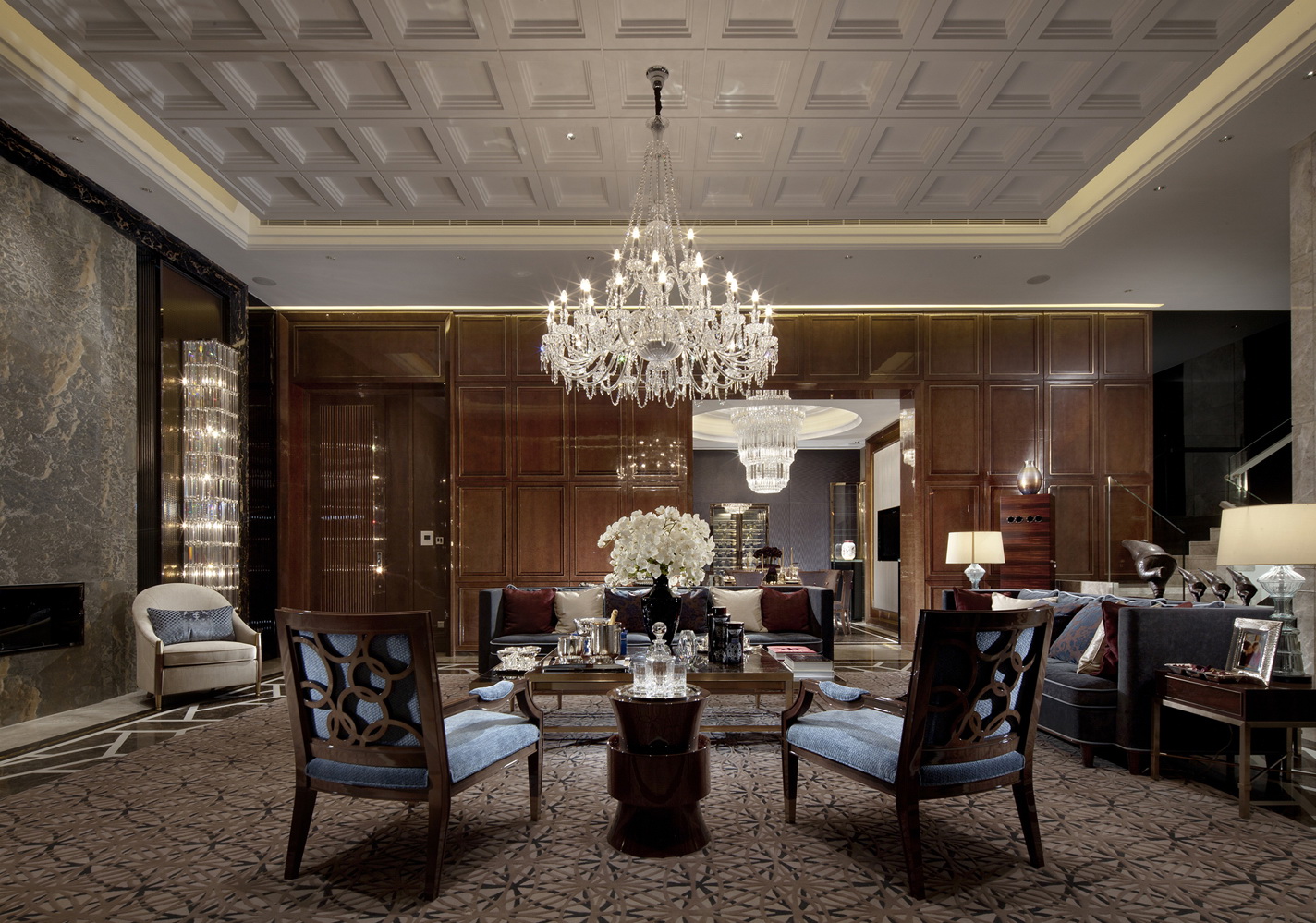 Luxe multi-tier kristallen kroonluchters voegen chic toe aan het interieur van de hal