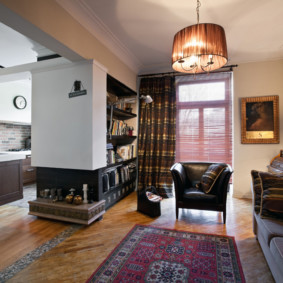 - Classic. In de klassieke stijl zijn grote appartementen het vaakst ingericht. Hij wordt gekenmerkt door de meest correcte symmetrie, luxueuze afwerkingsmaterialen. Gordijnen en achtergronden tonen monogrammen, ingewikkelde florale ornamenten. Het interieur wordt aangevuld met een open haard in het midden van de muur, verschillende schilderijen in houten gesneden frames.