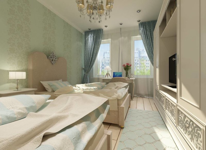 - Kinderen (voor een jongen, een meisje). De meisjeskamer is meestal versierd met veel wit-roze-oranje gordijnen, met hetzelfde behang. Het is acceptabel om een kleine kaptafel te plaatsen, een poppenhuis. De slaapkamer van de jongen is ingericht in grijs-blauwe tinten, maritieme, automotive thema's in het decor zijn acceptabel.
