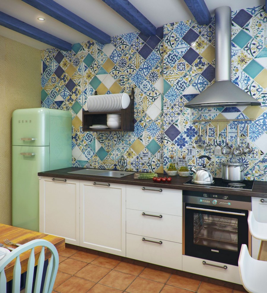 - De keuken. De keukenruimte in vierkamers is relatief ruim. Een werkruimte ontworpen volgens de regels van de "werkdriehoek" kan hier eenvoudig worden geplaatst, tegenover een tafel met een hoekbank waar het hele gezin kan dineren.
