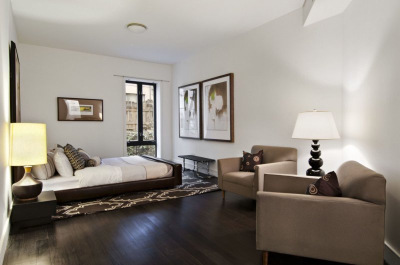 - Loft. Deze stijl wordt gebruikt in ruime appartementen, gecombineerde ruimtes. De muren zijn vrijwel zonder afwerking gelaten - kale baksteen, grijs ruw stucwerk zijn acceptabel. Planken worden op de vloer gelegd, het plafond is versierd met houten balken, draden en pijpen zijn speciaal in kleur gemarkeerd.