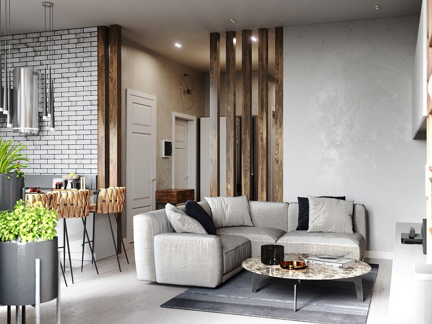 - Meubelzonering: bar, bank, boekenplank - kan fungeren als een element dat verschillende zones scheidt.