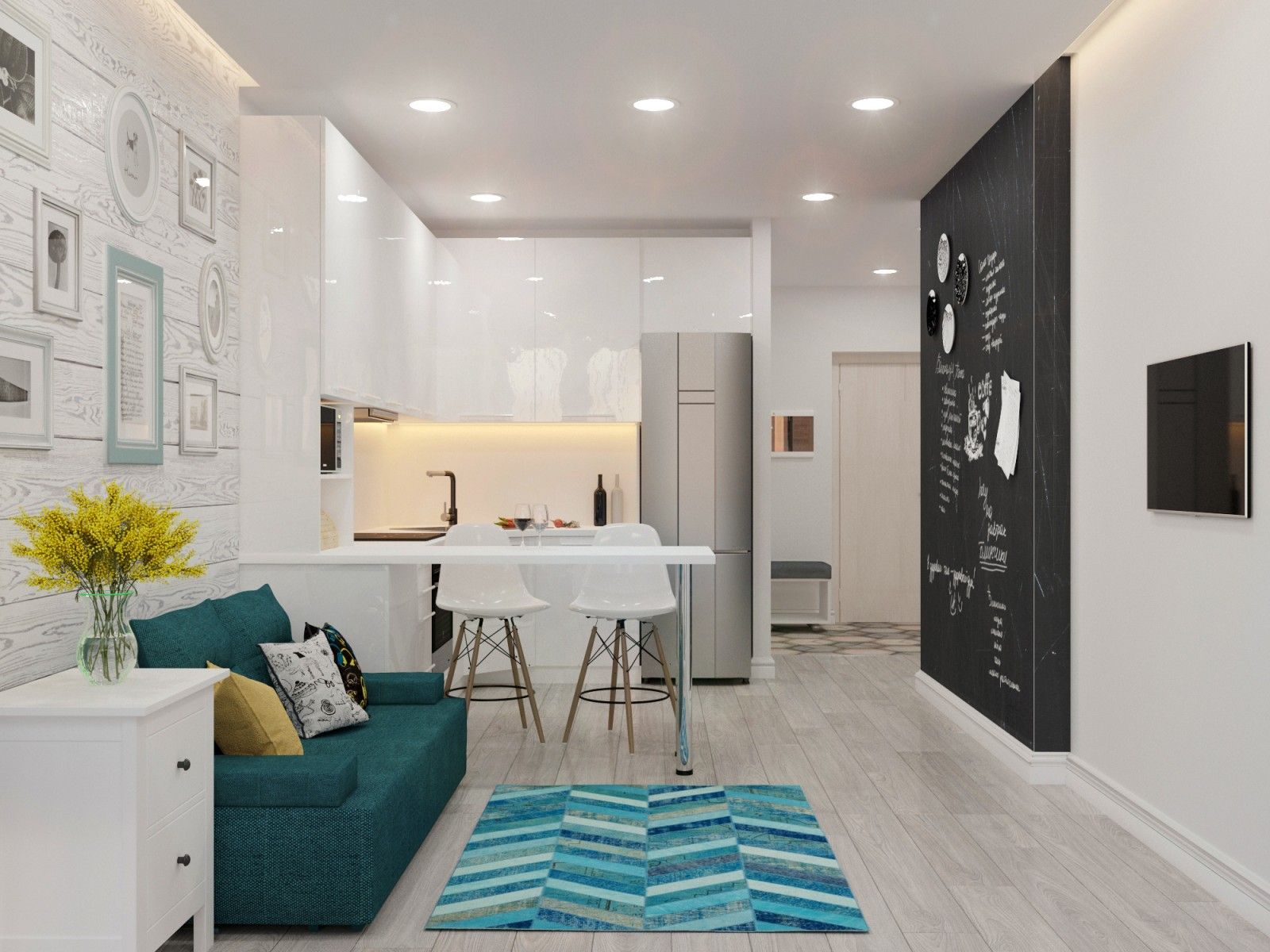 Ontwerpopties voor verschillende kamers in een kleine studio
