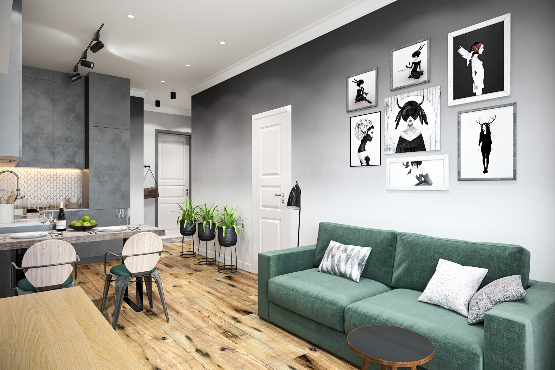 Echte planken zijn de beste vloeroptie voor een studio in Scandinavische stijl