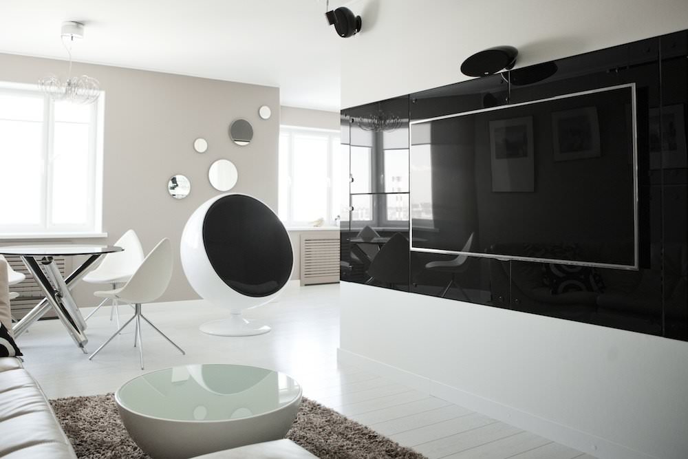 Wit en zwart - eenheid en tegendeel - de filosofische inhoud van het interieur. Het is beter om wit als basis te nemen, en zwart als een accent, of in gelijke delen.