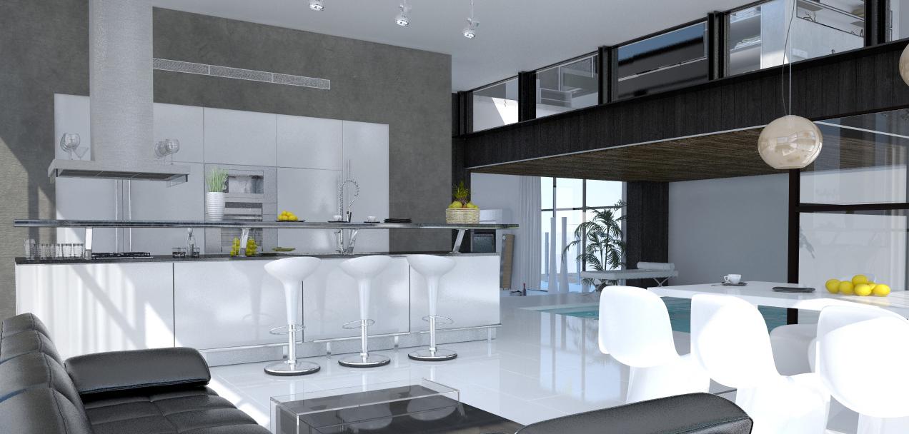 Stijlvolle keuken in zwart en wit, met de lichte toon als basis