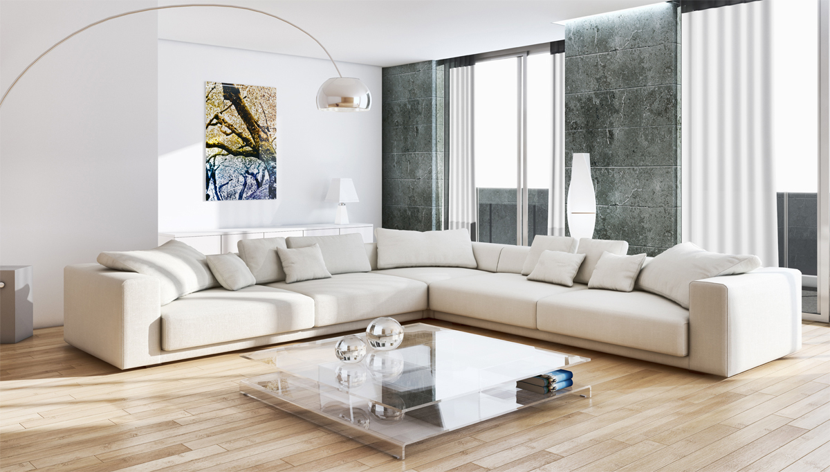 Als de woonkamer indrukwekkend groot is, is het raadzaam om een grote luxe bank te kopen in een ringvorm of in de vorm van de letter "P".