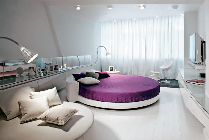 De kamer, waarin de witte kleur heerst, ziet er elegant, ruim en luchtig uit.