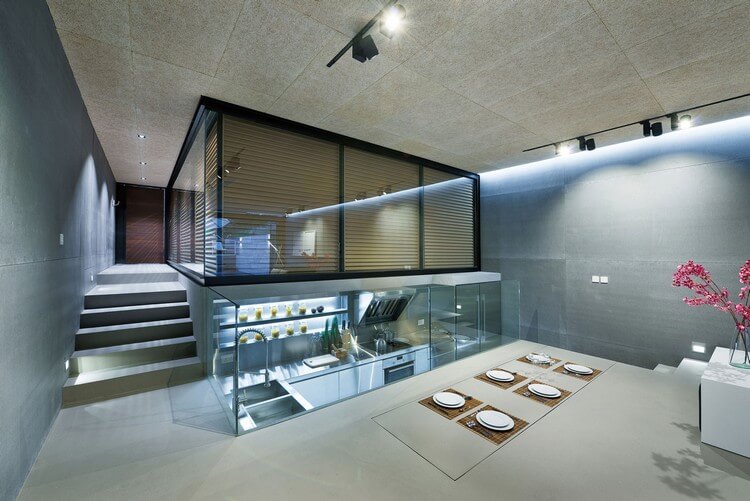 - Bij de inrichting van het interieur worden materialen gebruikt die geschikt zijn voor industriële gebouwen: glas, kunststof, chroom, beton, metselwerk, paneelmaterialen.