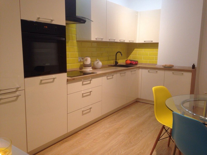 Een lineaire koptelefoon langs één muur - een oplossing voor diegenen die niet geïnteresseerd zijn in het gemak van koken