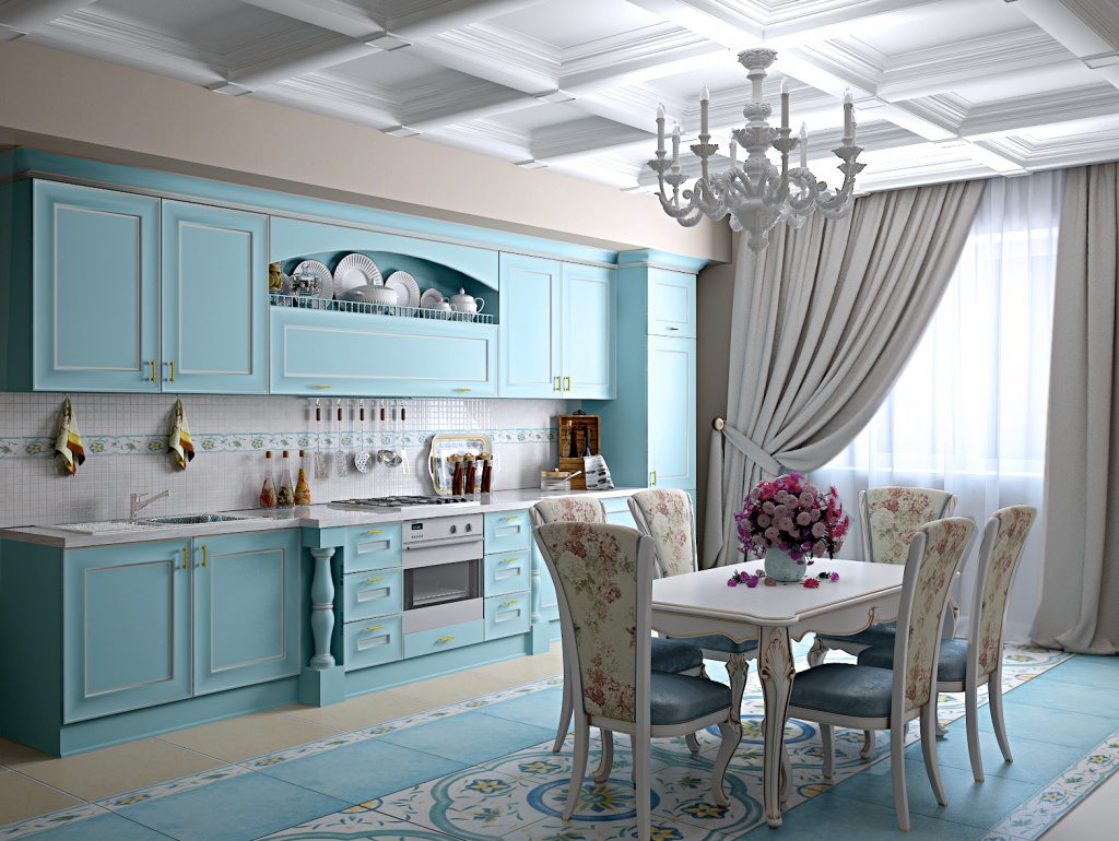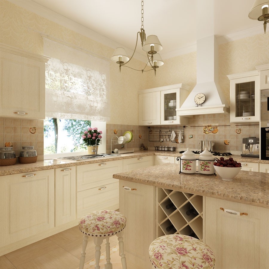- Het kleurenschema hangt ook af van de algehele stijl van de keuken. De hoofdregel van elk interieur is de regel van drie. Dit betekent dat er niet meer dan drie primaire kleuren in de kamer mogen worden betrokken.