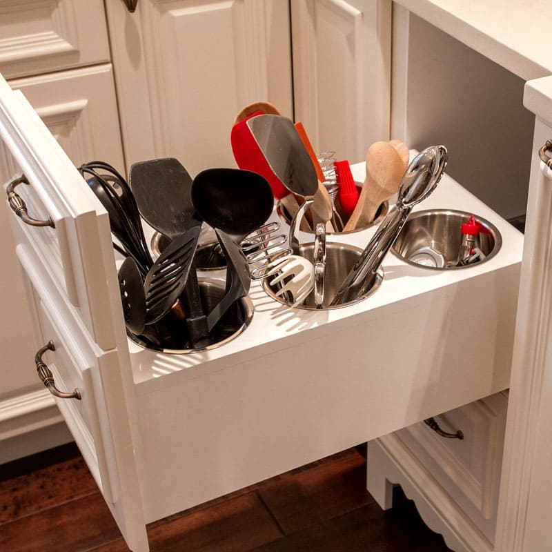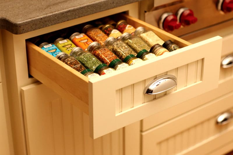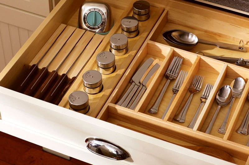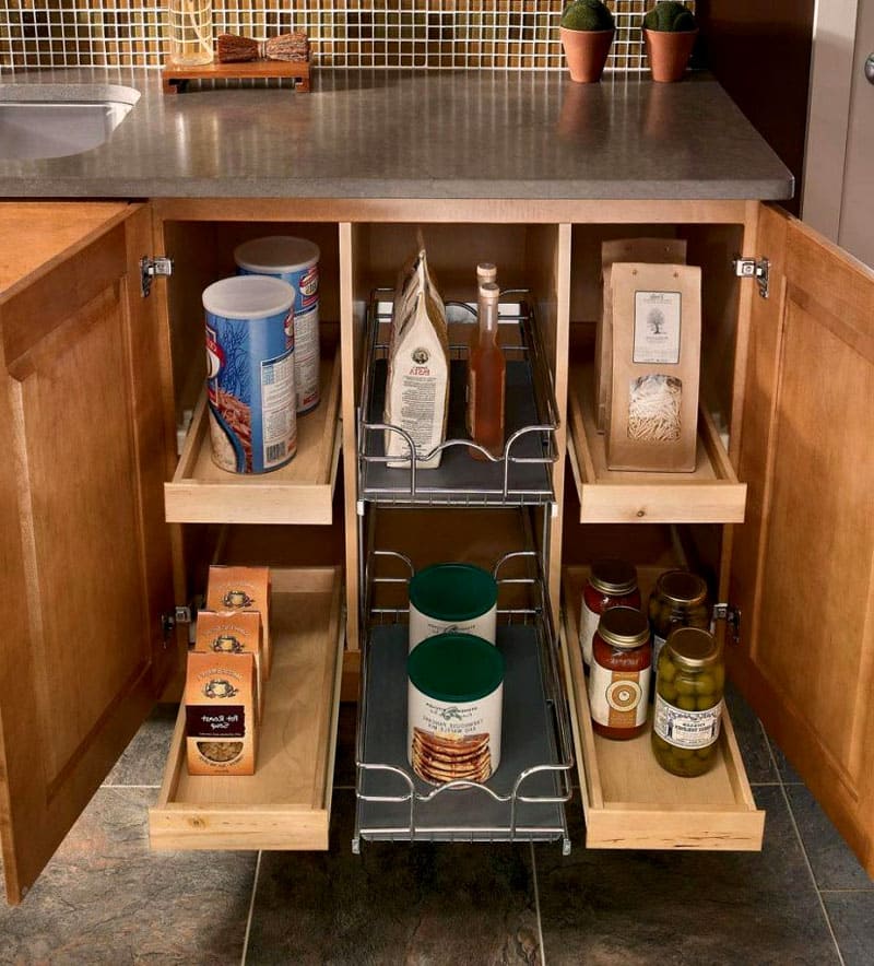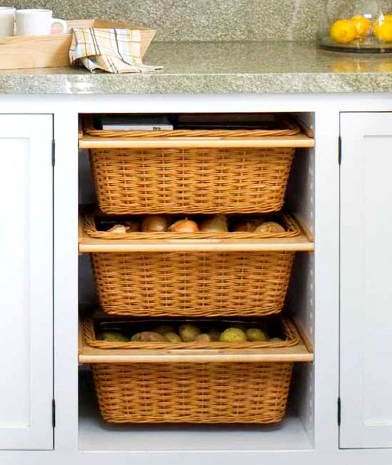 Functioneel meubilair is wanneer het handig is om al het keukengerei op te bergen en te gebruiken.