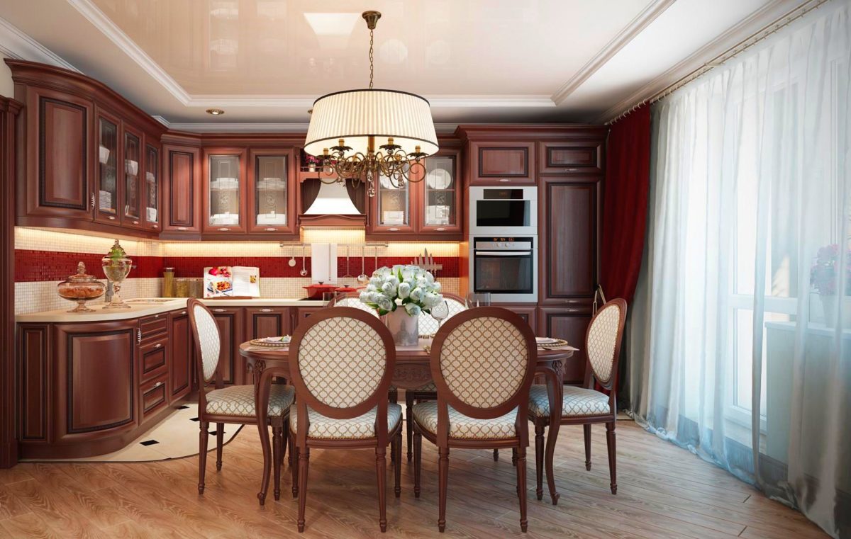 Bij het kiezen van een keukenset moet u rekening houden met hoeveel ruimte er na installatie zal worden ingenomen. In het ideale geval zouden meubels niet meer dan 25% van de totale keuken in beslag moeten nemen. Dit laat ruimte voor een comfortabele doorgang en een eetgedeelte.