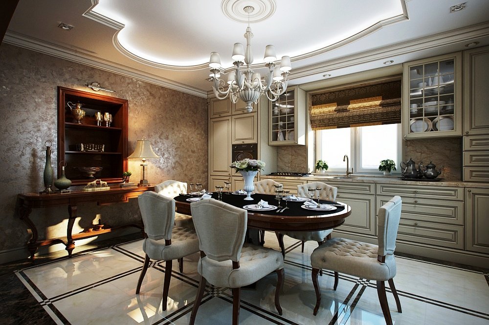 - De materiaalkeuze hangt volledig af van de algehele stijl van de kamer. Als de keuken bijvoorbeeld een massieve tafel van natuurlijk hout heeft en de keukenset uit MDF-panelen is gemaakt, ziet deze er smakeloos uit.