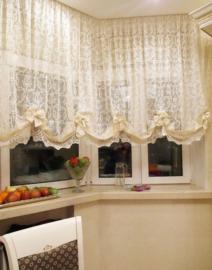 Het raamdecor van de erker moet worden gekozen op basis van de algemene stijl van het keukeninterieur
